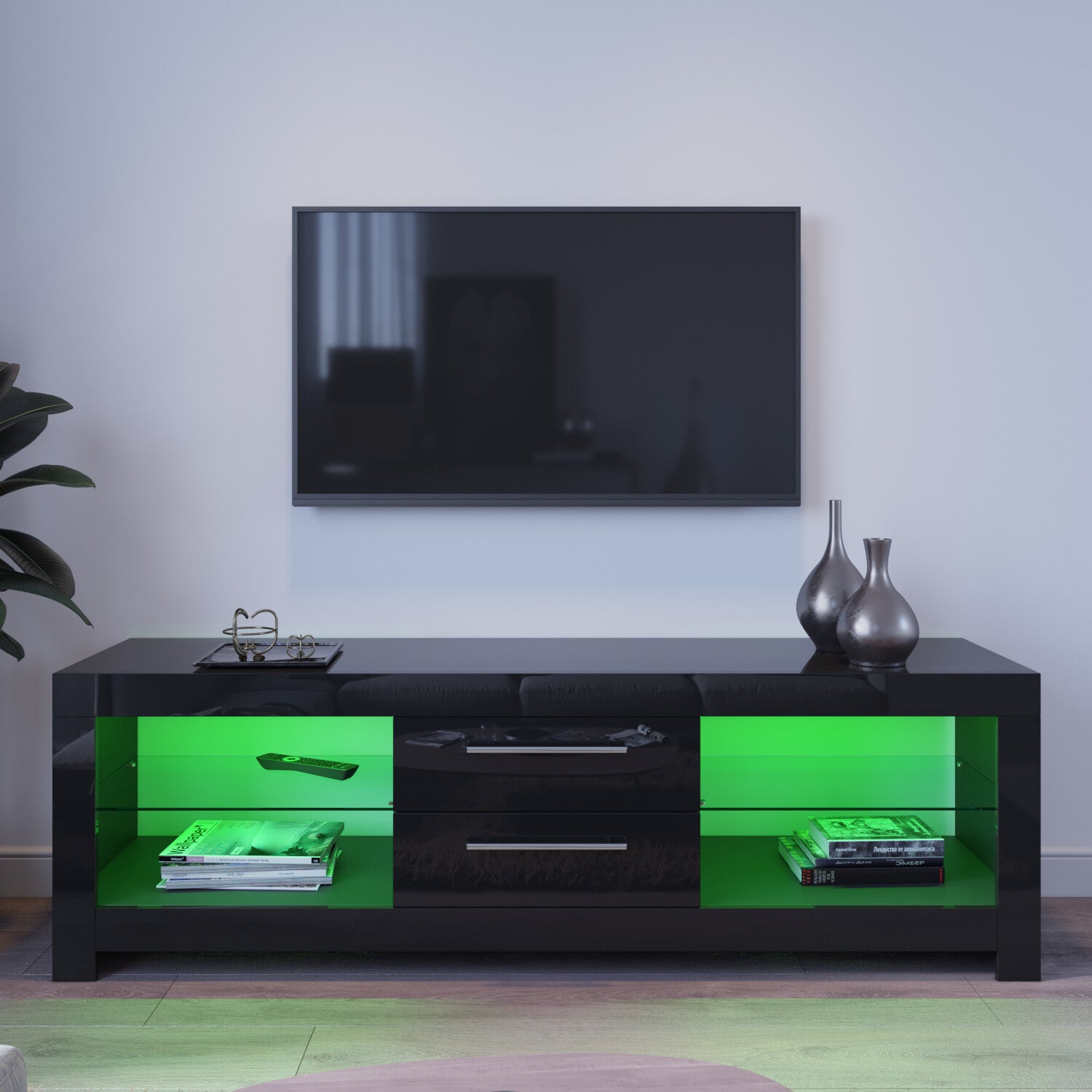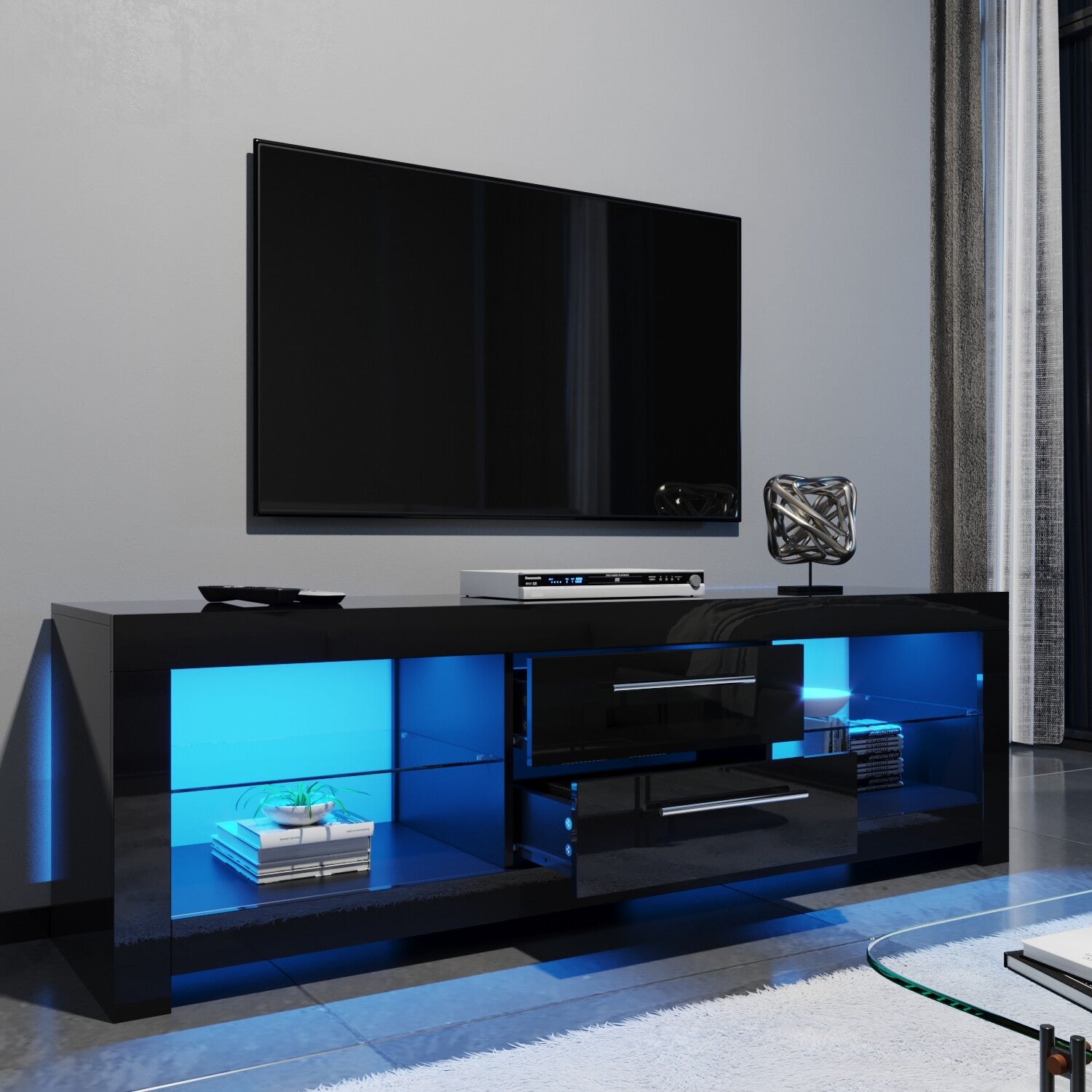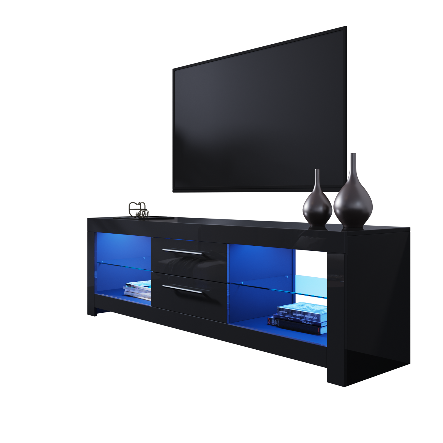 160cm High Gloss Black TV Unit Cabinet Stand with RGB LED Light Storage Drawers
