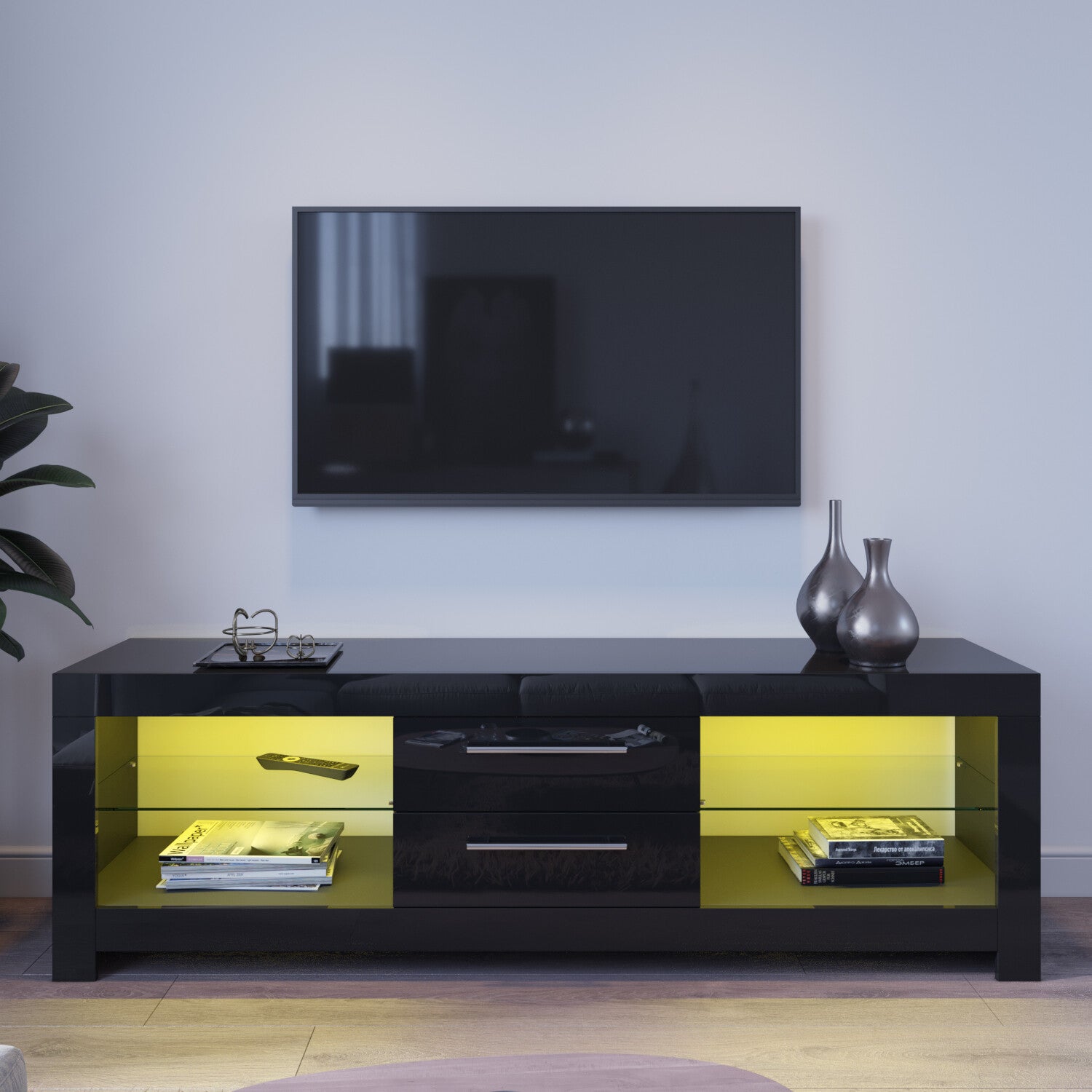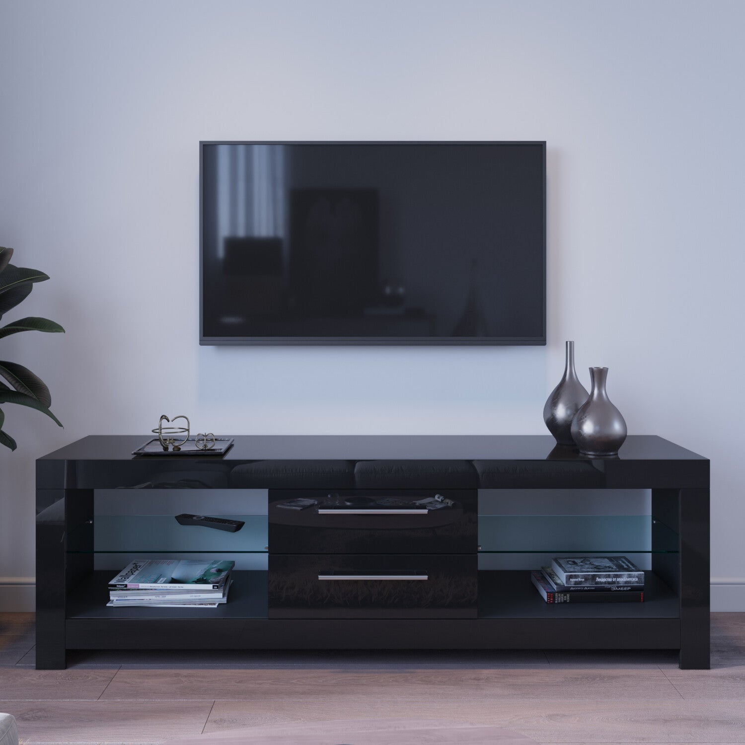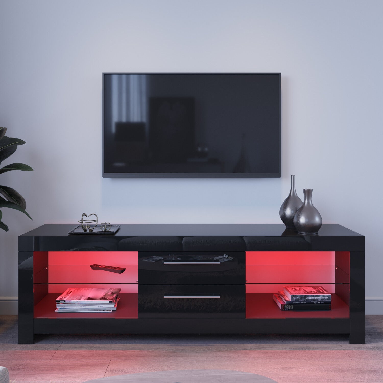 160cm High Gloss Black TV Unit Cabinet Stand with RGB LED Light Storage Drawers