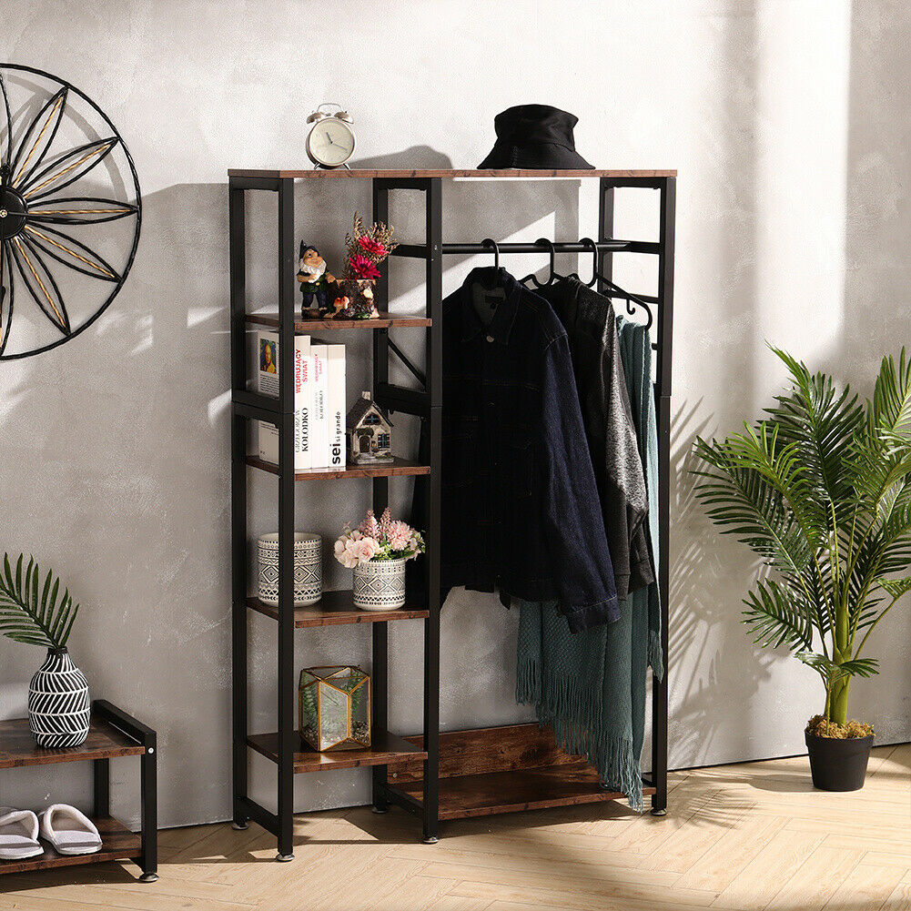 160CM Industrial Metal Clothes Rail Rack Stand Rustic Wood Retro Vintage Garment