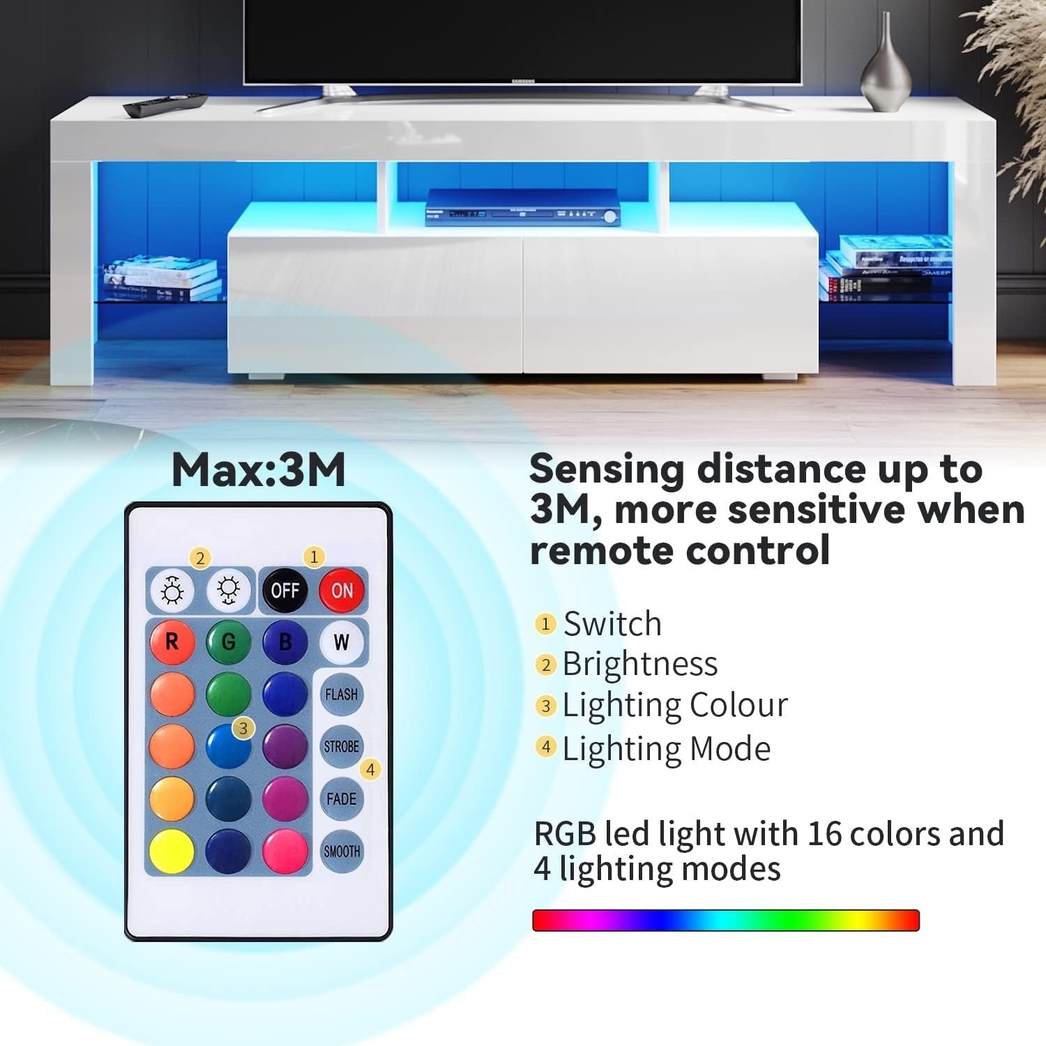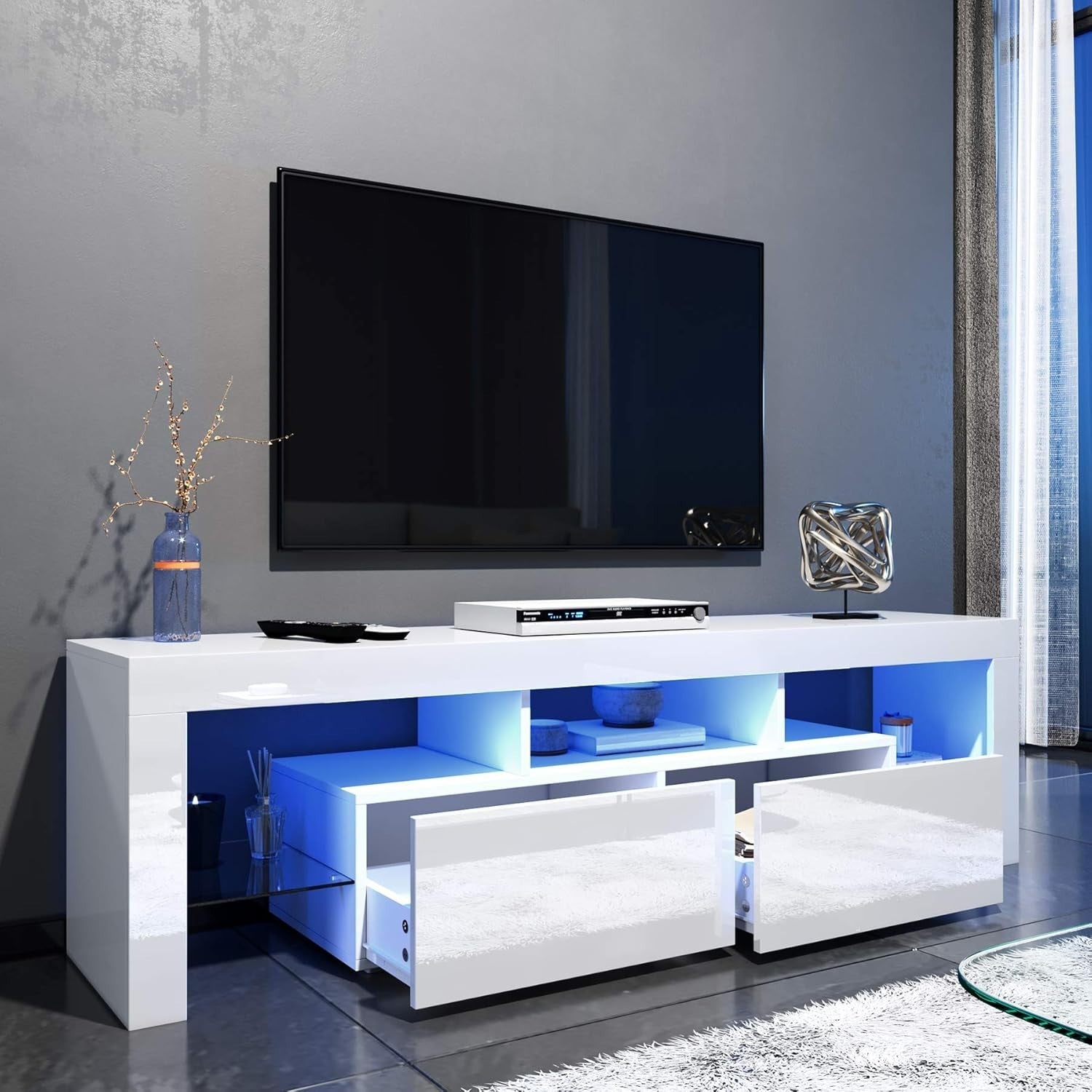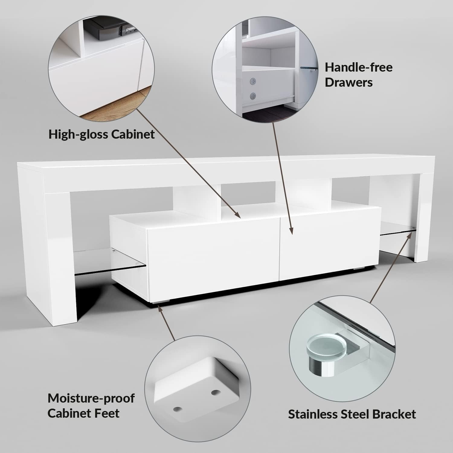 160cm Large TV Unit TV Stand Cabinet Sideboard with RGB LED Lights Living Room