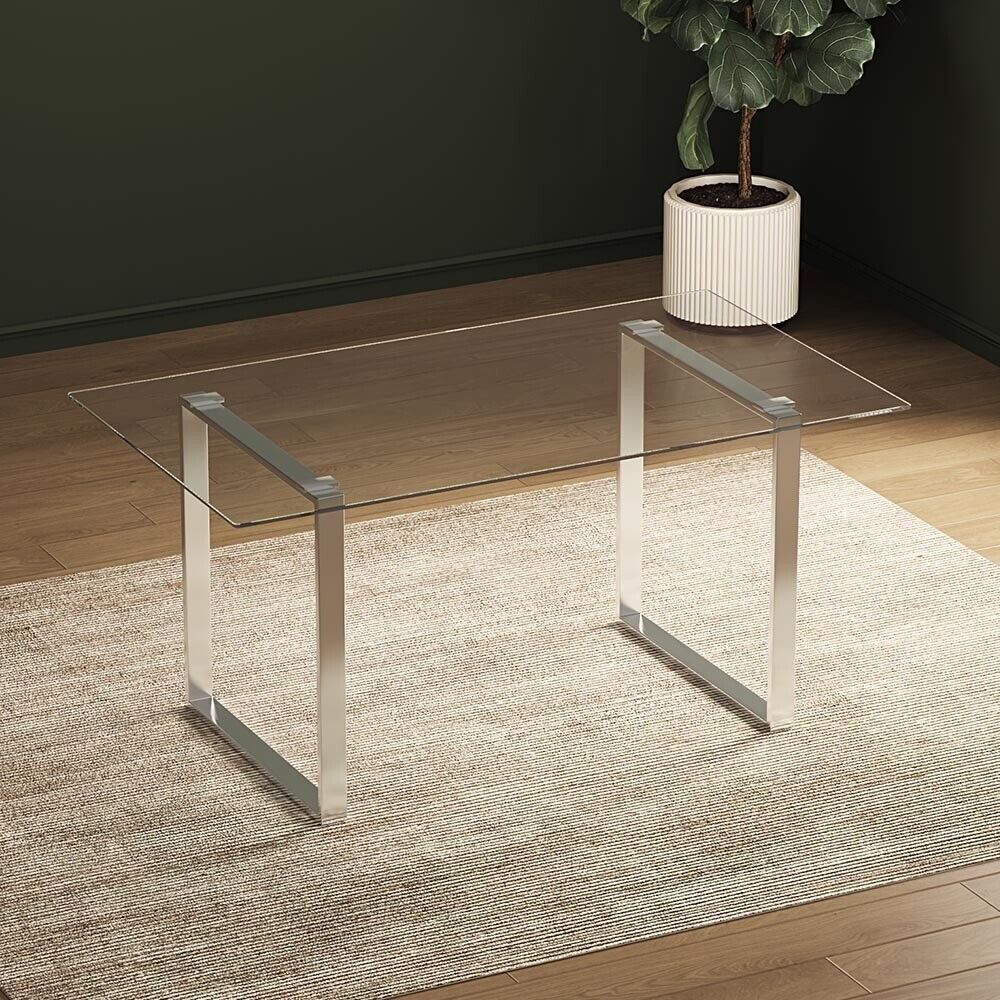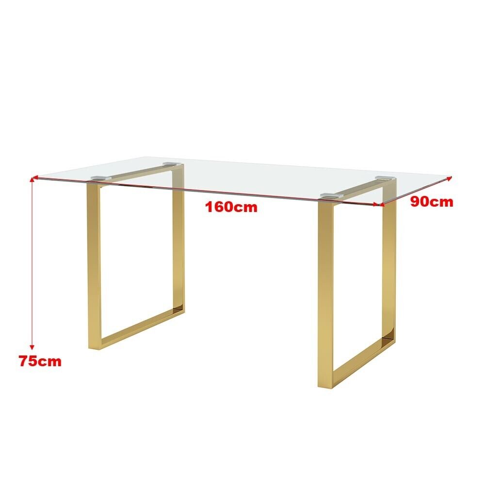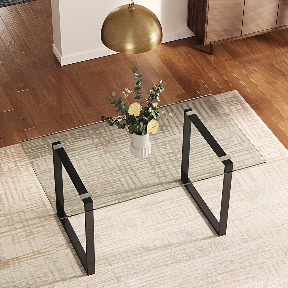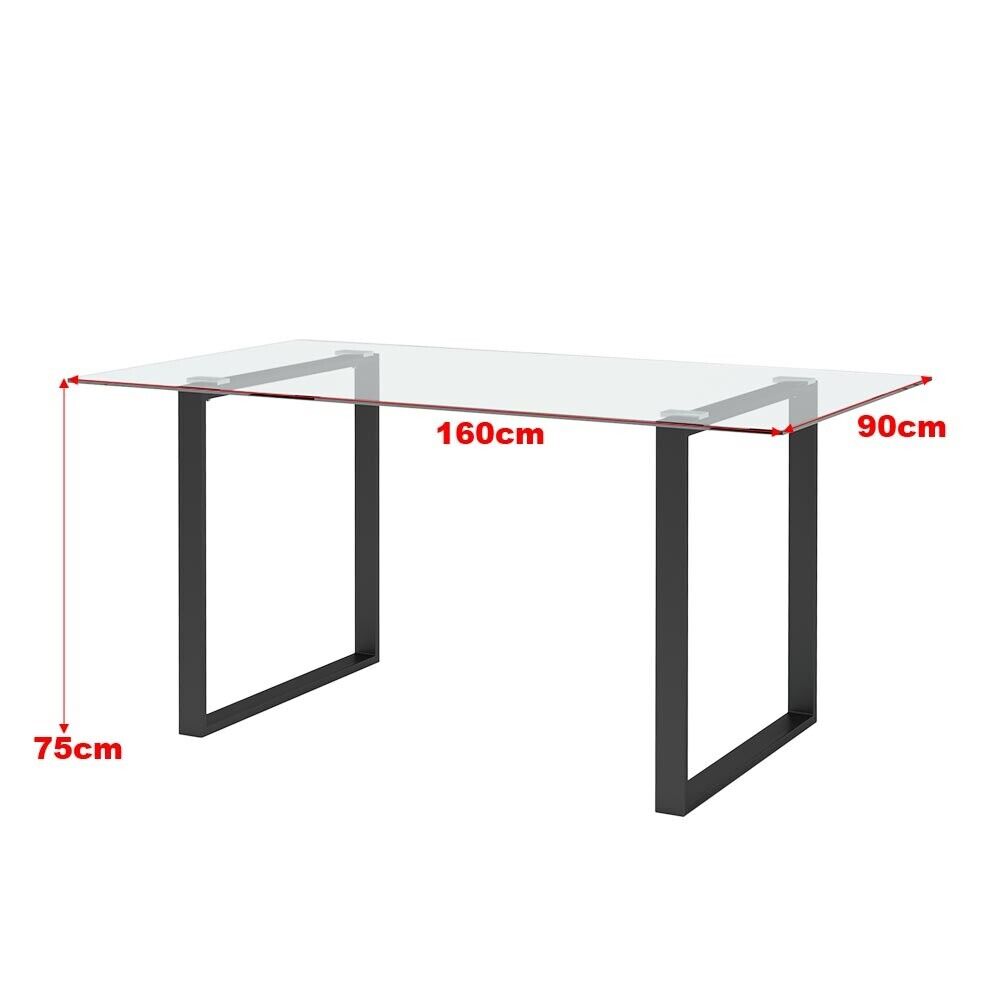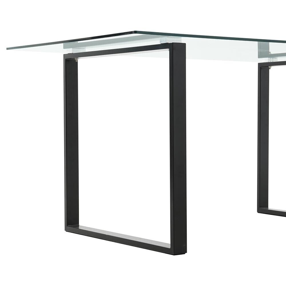 160cm LARGR Industrial Tempered Glass Dining Table Desk Double Square Base Legs