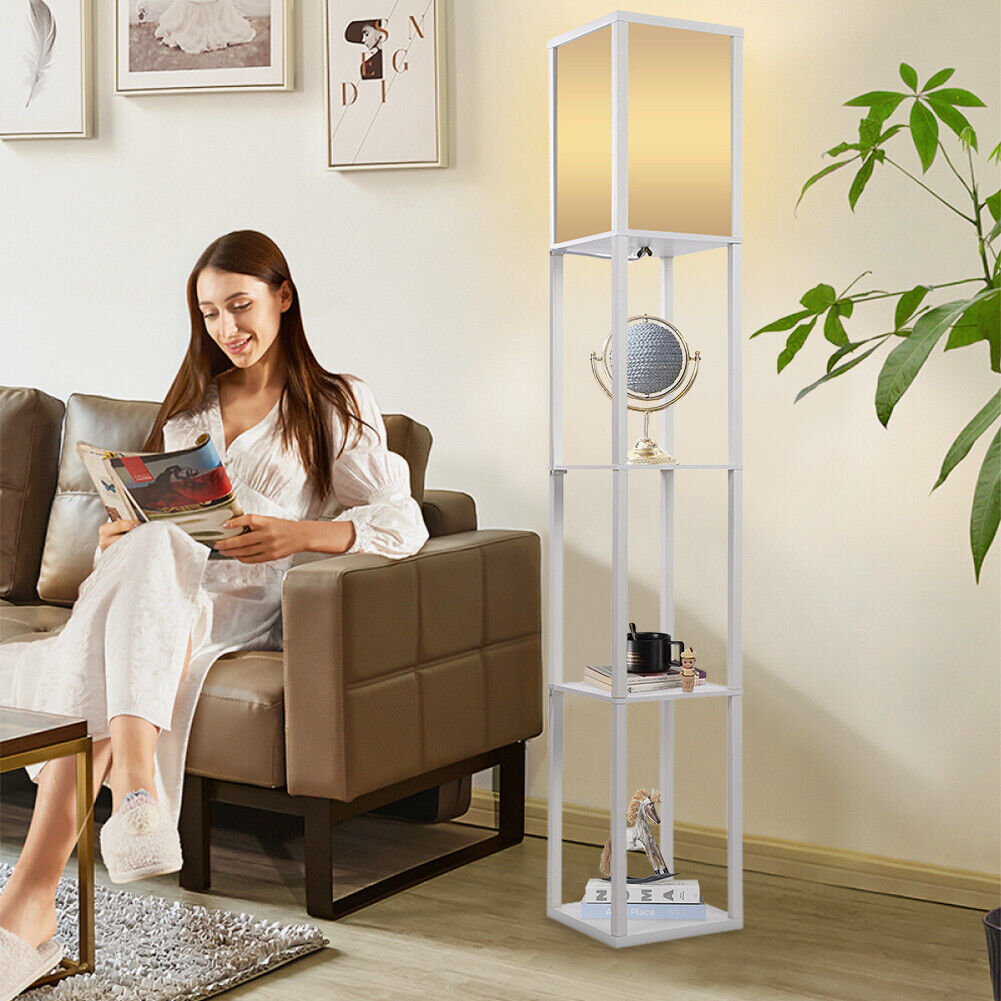 160cm Modern Shelf Floor Lamp Soft Light Open Shelves Storage Display Rack uk