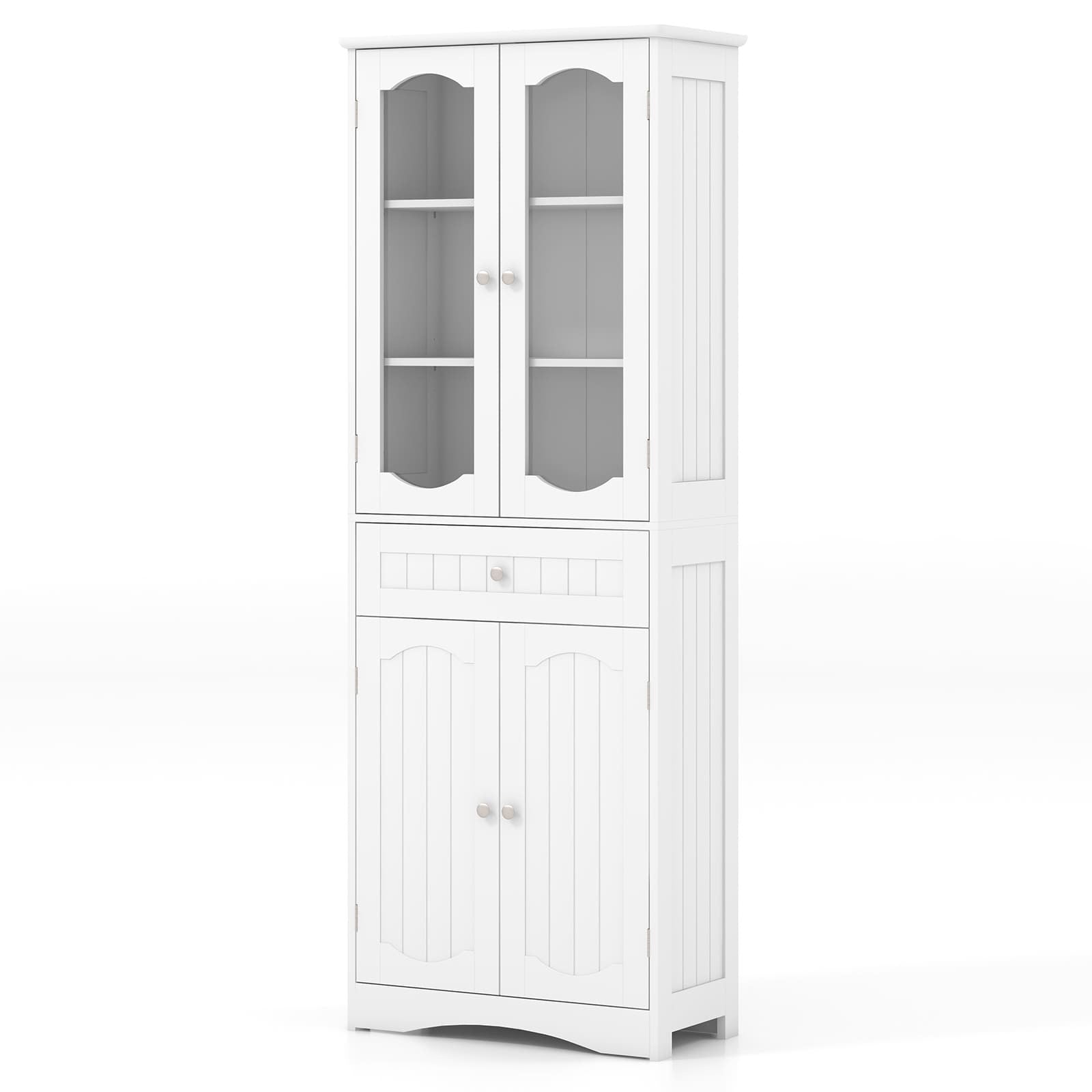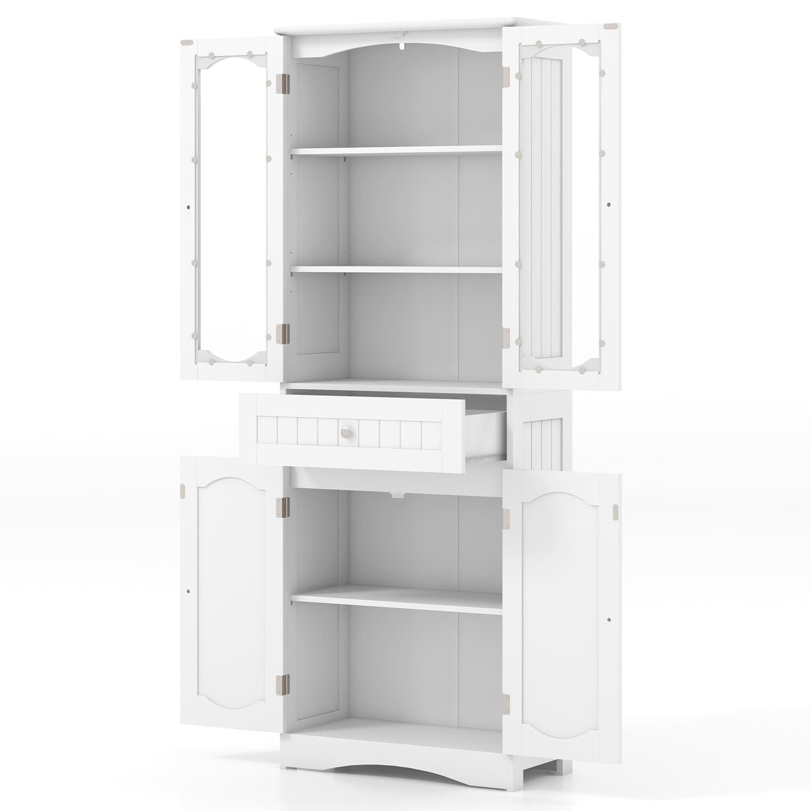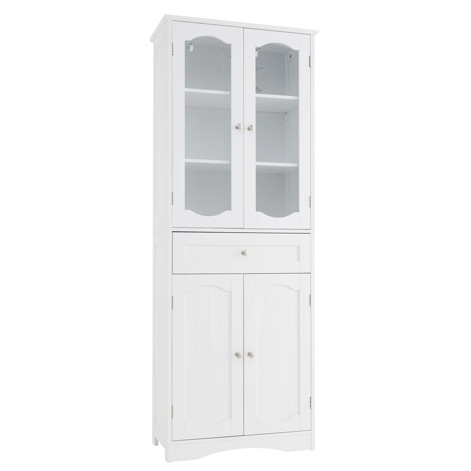 160cm Tall Bathroom Storage Cabinet Freestanding Linen Cabinet w/ 2 Doors White