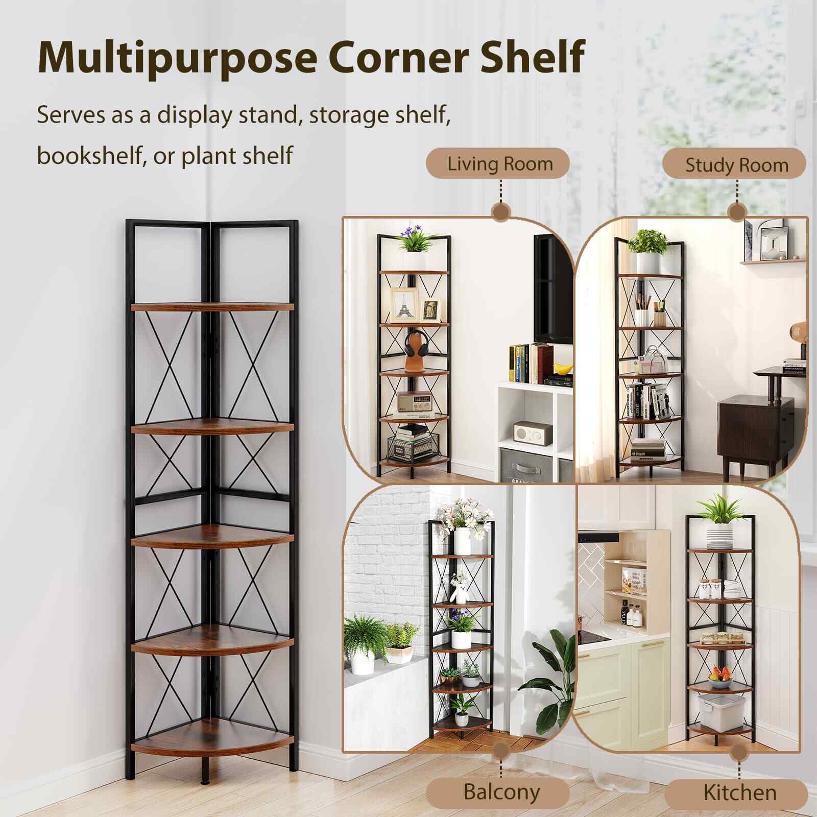 160cm Tall Corner Storage Shelves Display Rack X-shaped Brackets-Coffee