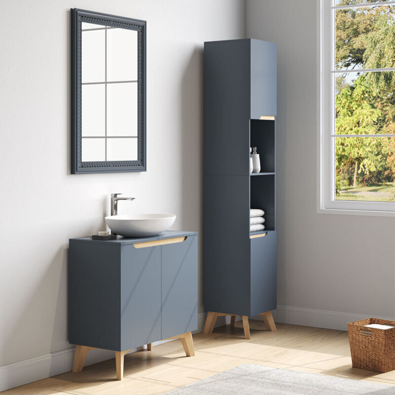 160CM Tall Slim Narrow Corner Storage Cabinet Cupboard Bathroom Wood Shelf Grey