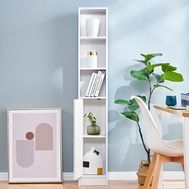 162cm Tall Storage Cabinet Bathroom Corner Slim Cabinet with 3-Tier Shelf&Door