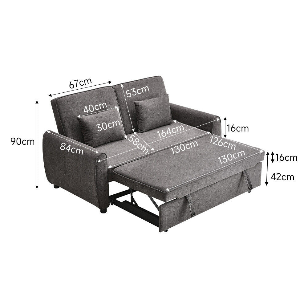 164cm Wide 3 in 1 Grey Convertible Sofa Bed Lounger Chaise Bed Sleeper Sofabed