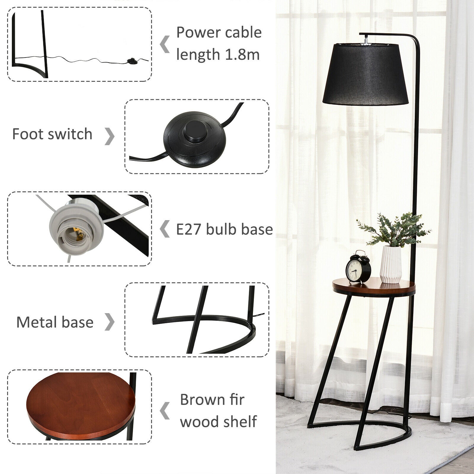 165cm Unique Floor Lamp & Middle Wood Shelf Industrial Style Home Brown Black