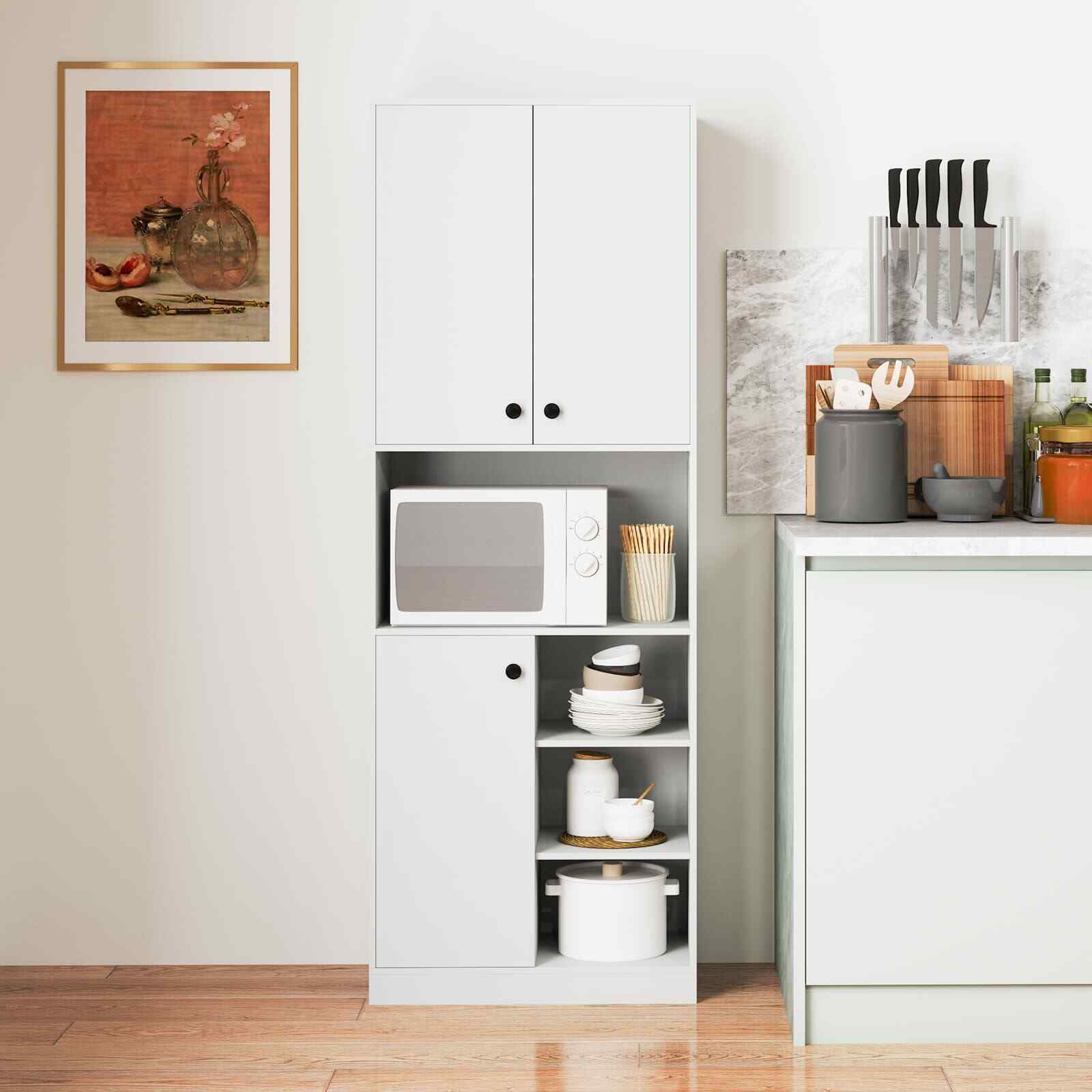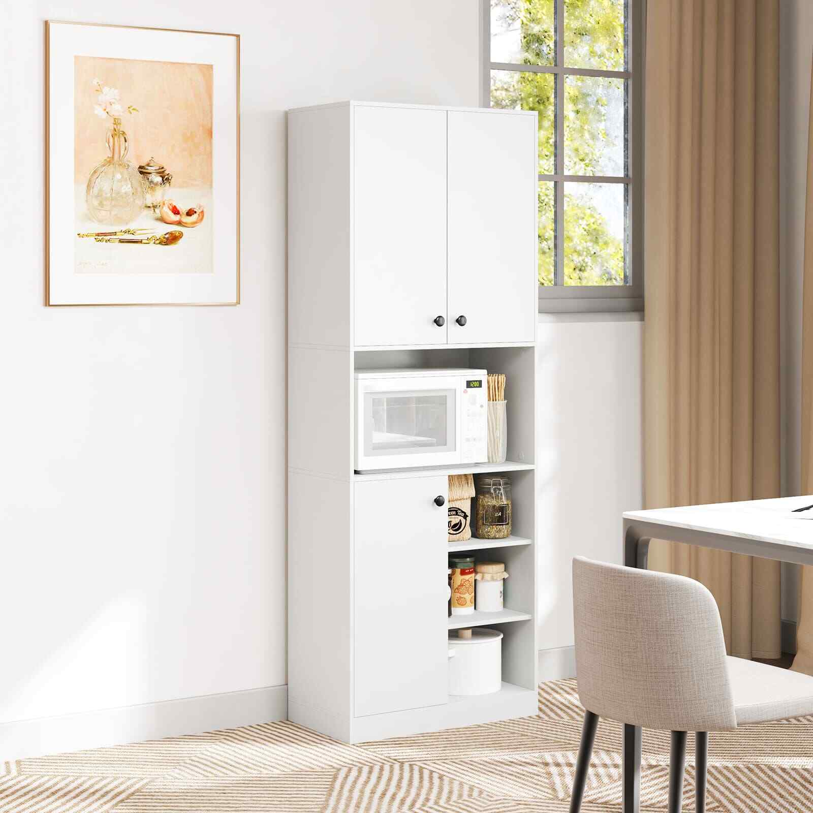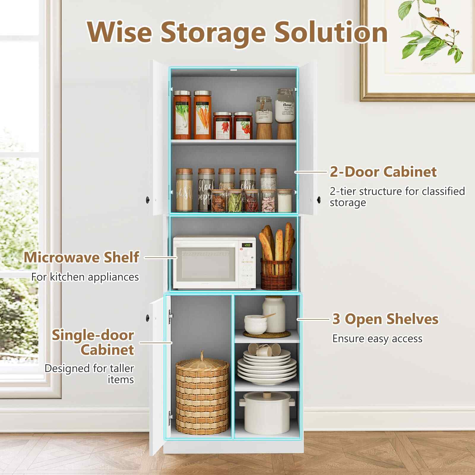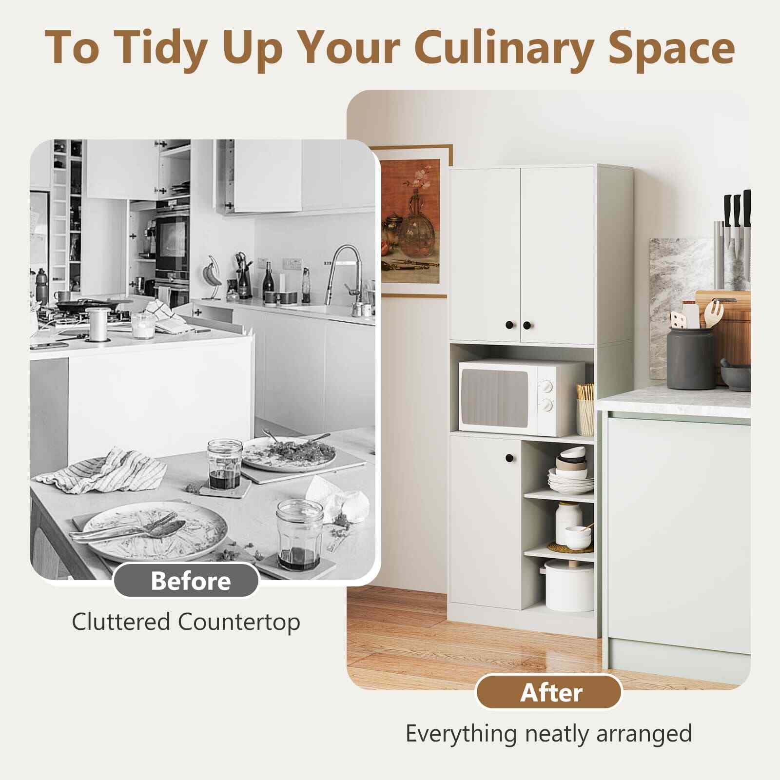 166cm Modern Hutch Cabinet Kitchen Pantry Storage w/Microwave Stand-White