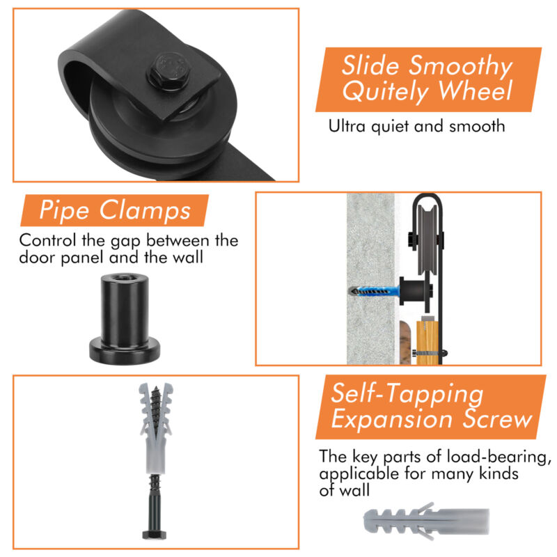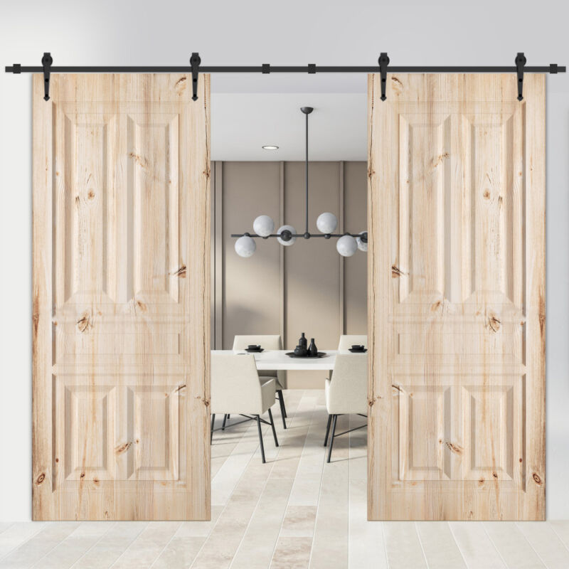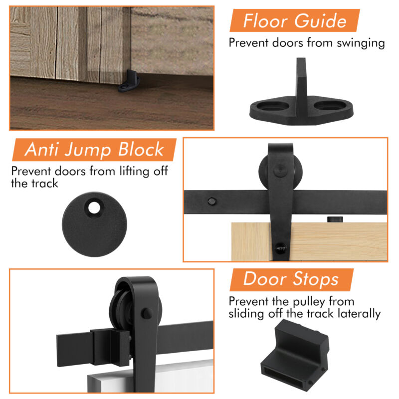 16FT Double Sliding Barn Wood Door Carbon Steel Closet Track Kit Hardware Set