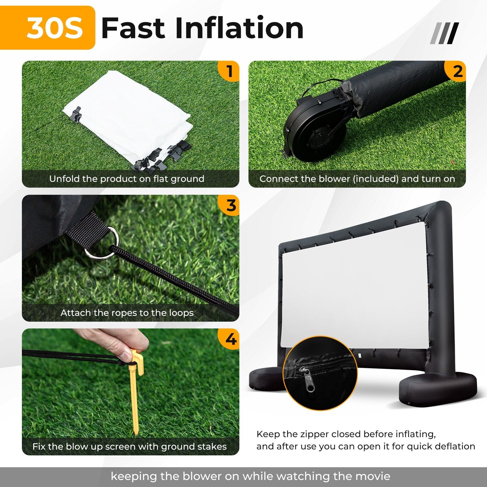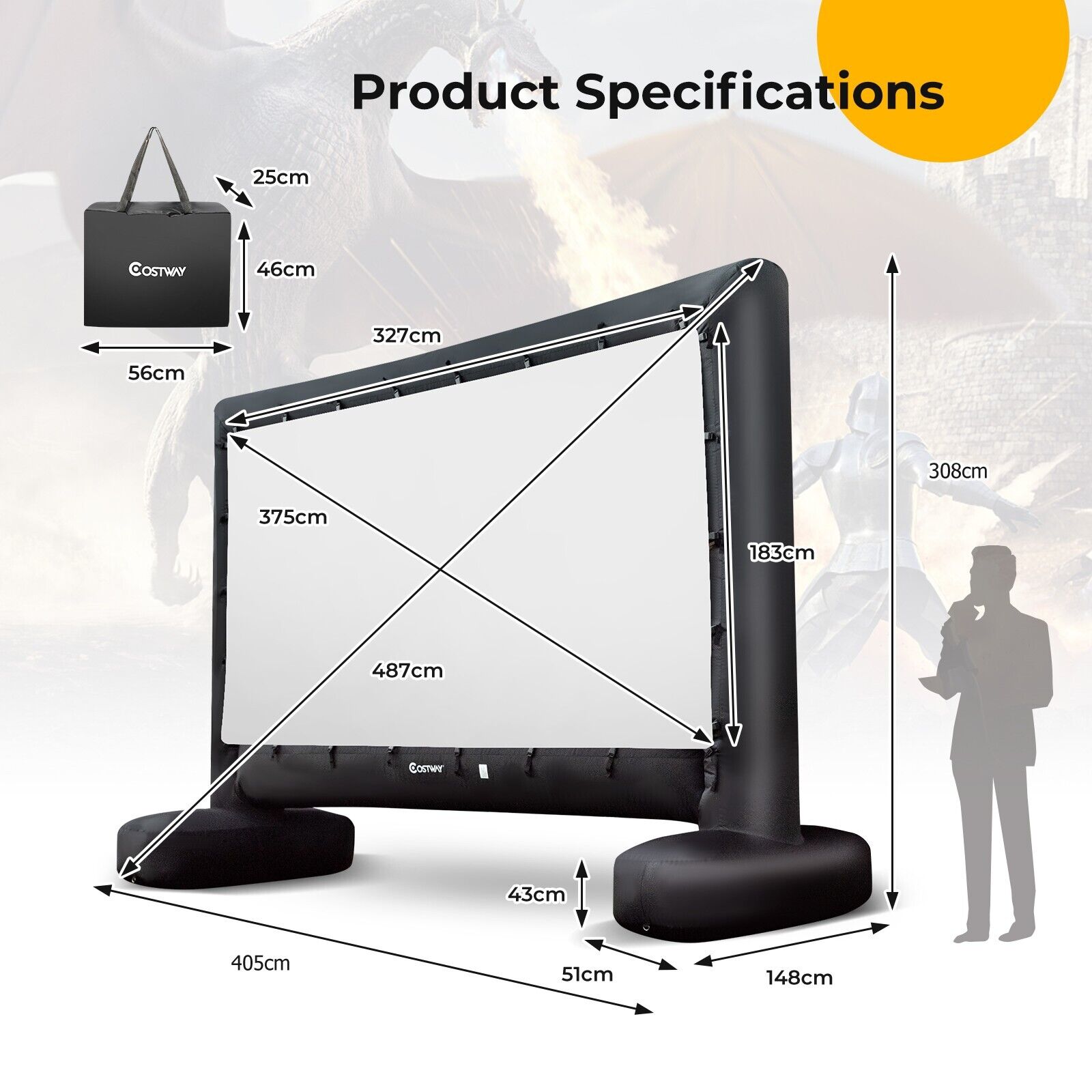 16FT Inflatable Projector Screen 16:9 HD Double Side Movie Screen w/ Carry Bag
