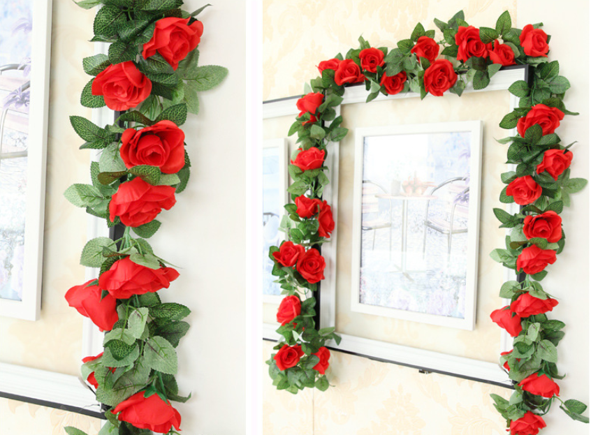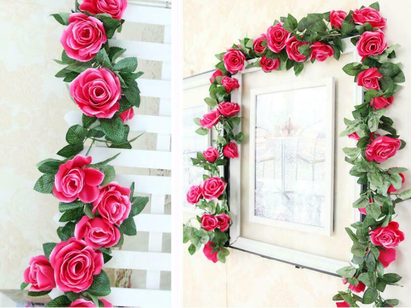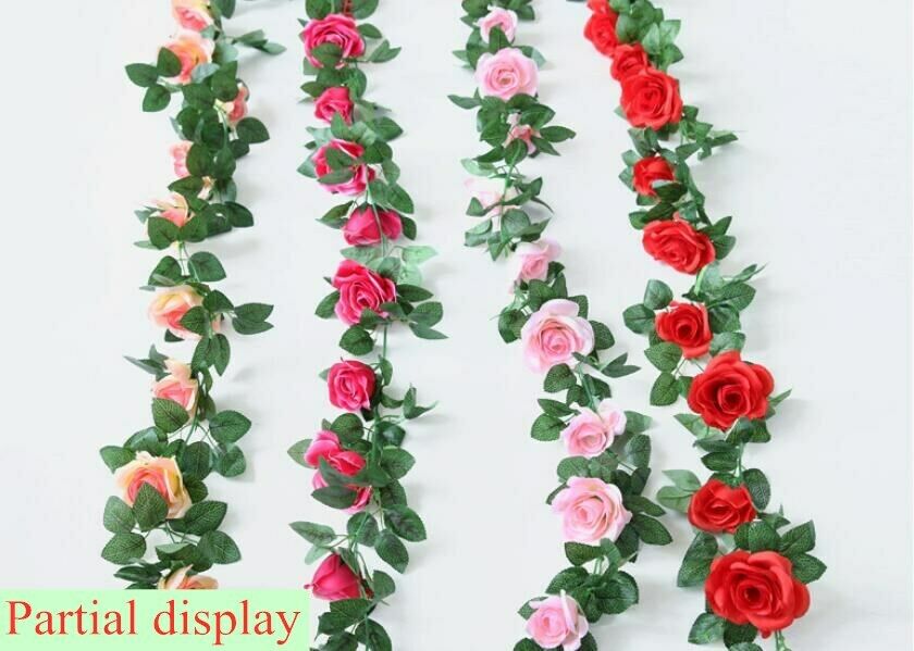 16Heads 7Ft Artificial Faux Silk Flower Rose Leaf Garland Vine Home Party Decor
