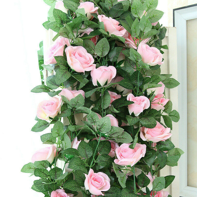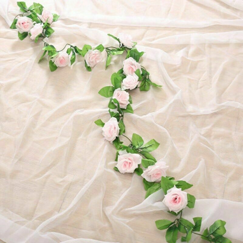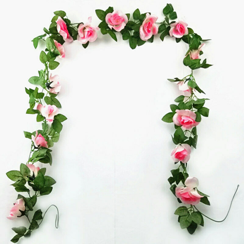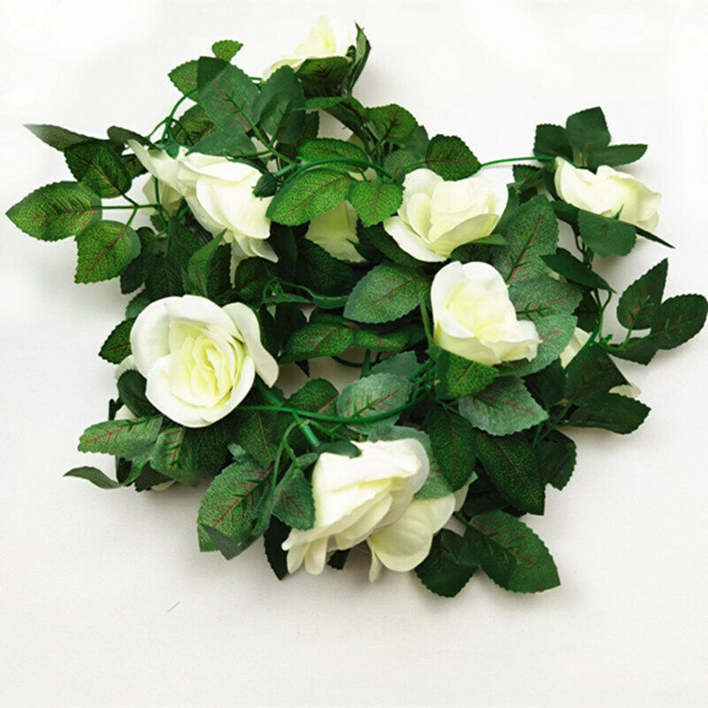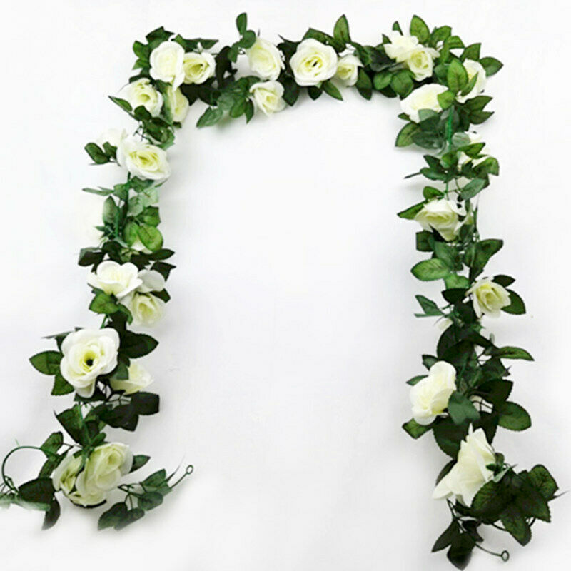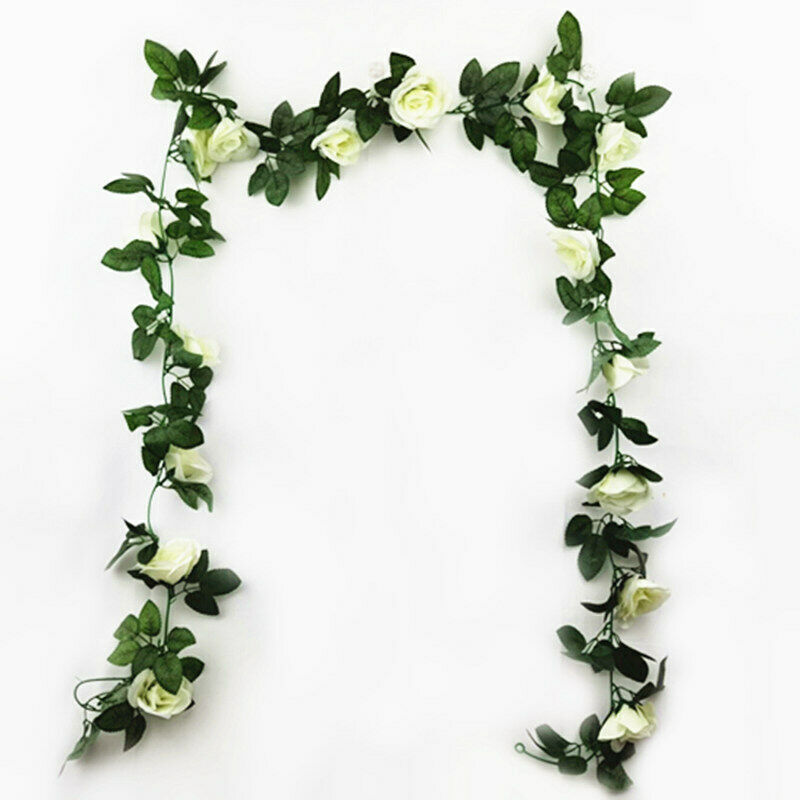 16Heads Artificial Faux Silk Flower Rose Leaf Garland Vine Home Party Decor 7Ft