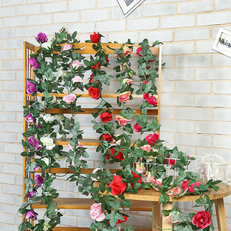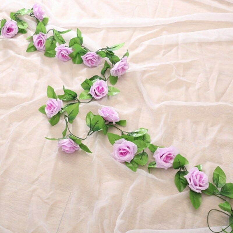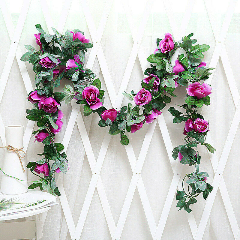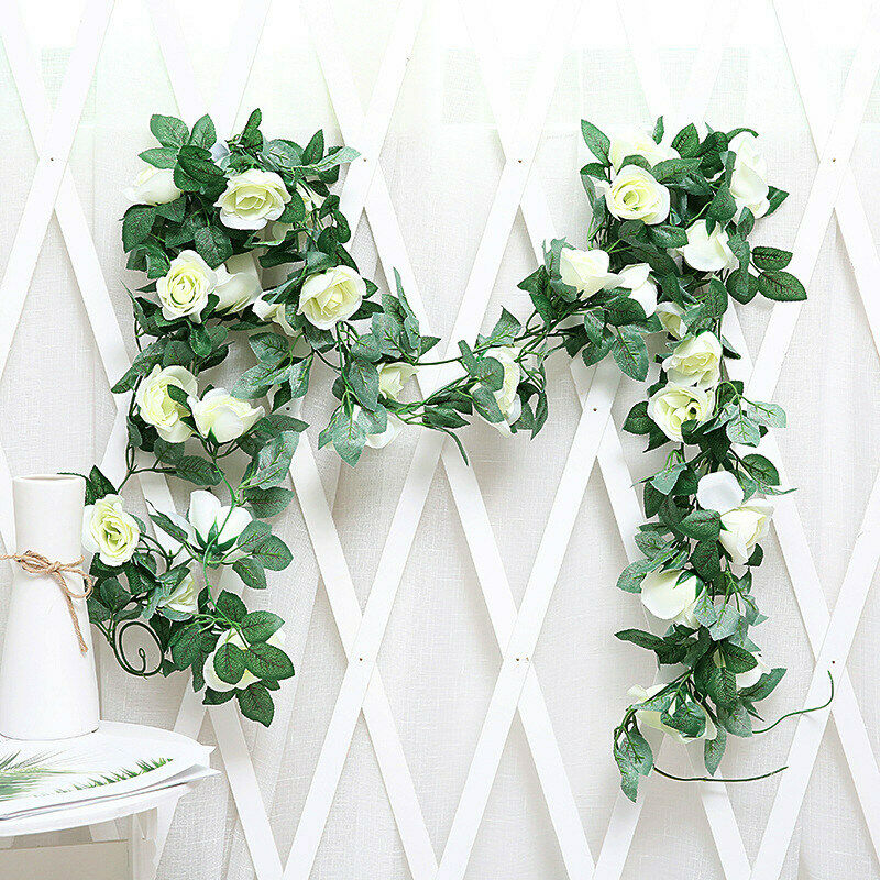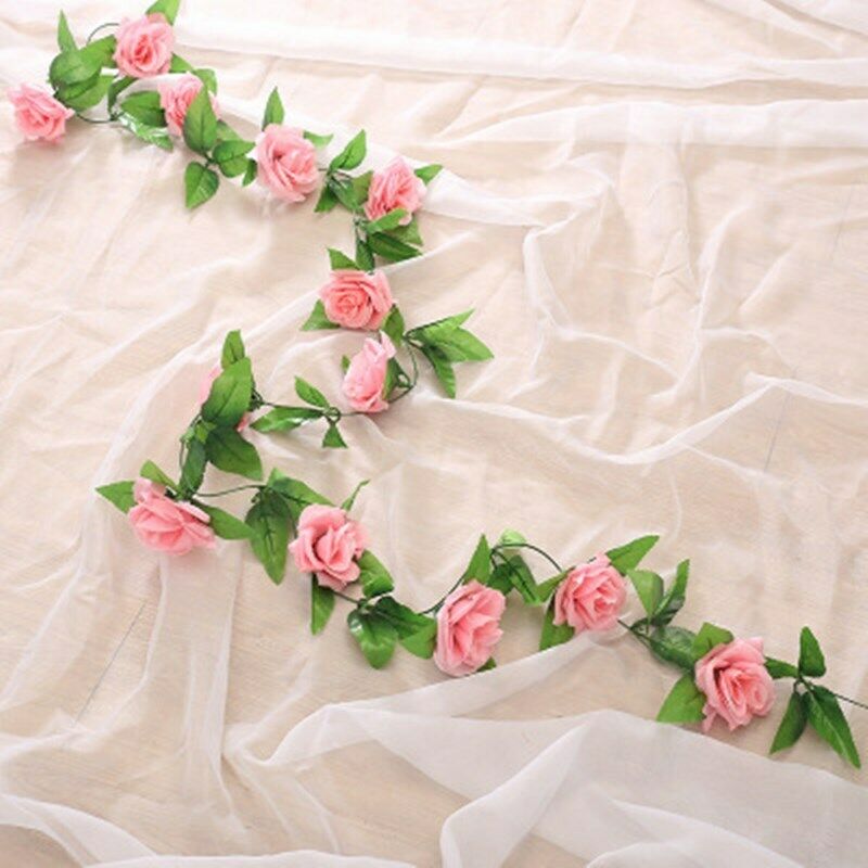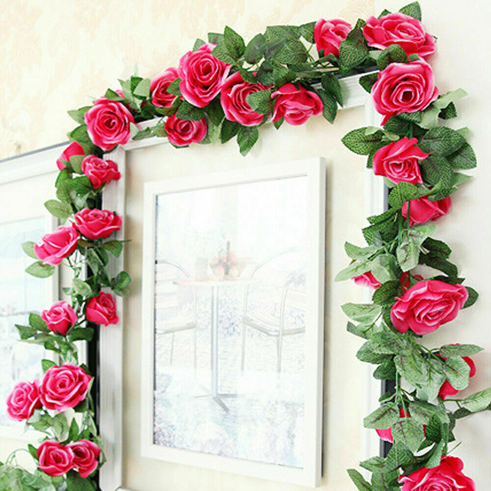 16Heads Artificial Faux Silk Flower Rose Leaf Garland Vine Home Party Decor 7Ft