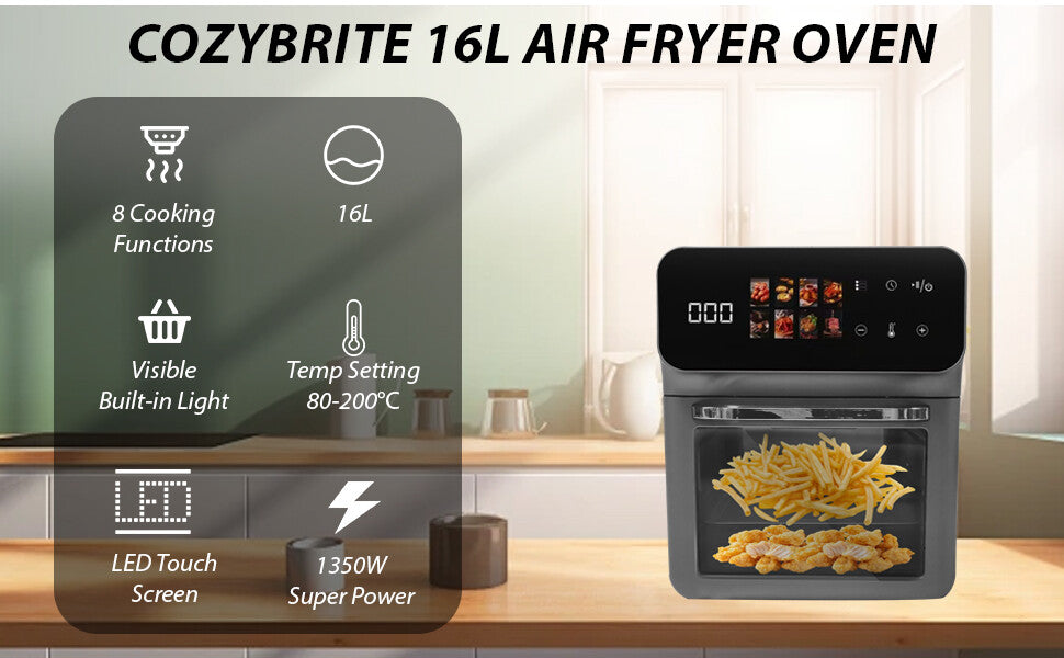 16L Air Fryer Digital Kitchen Oven Oil Free Low Fat Healthy Frying Cooker 1350W