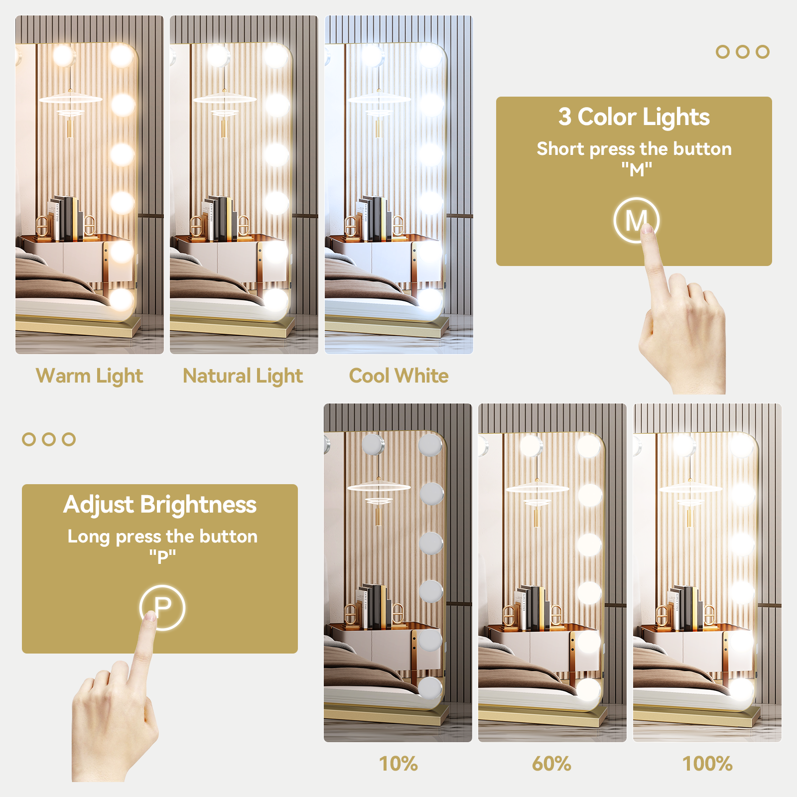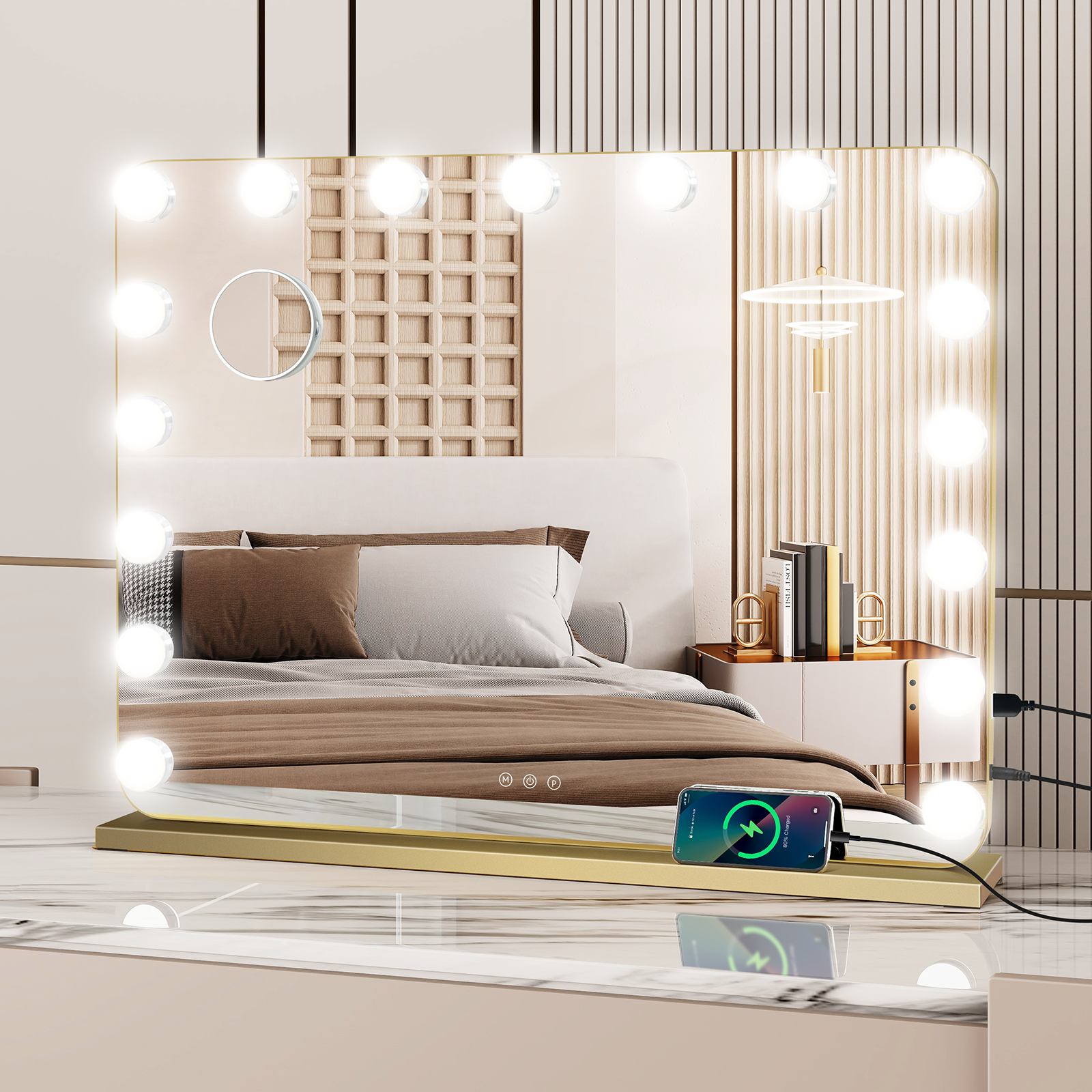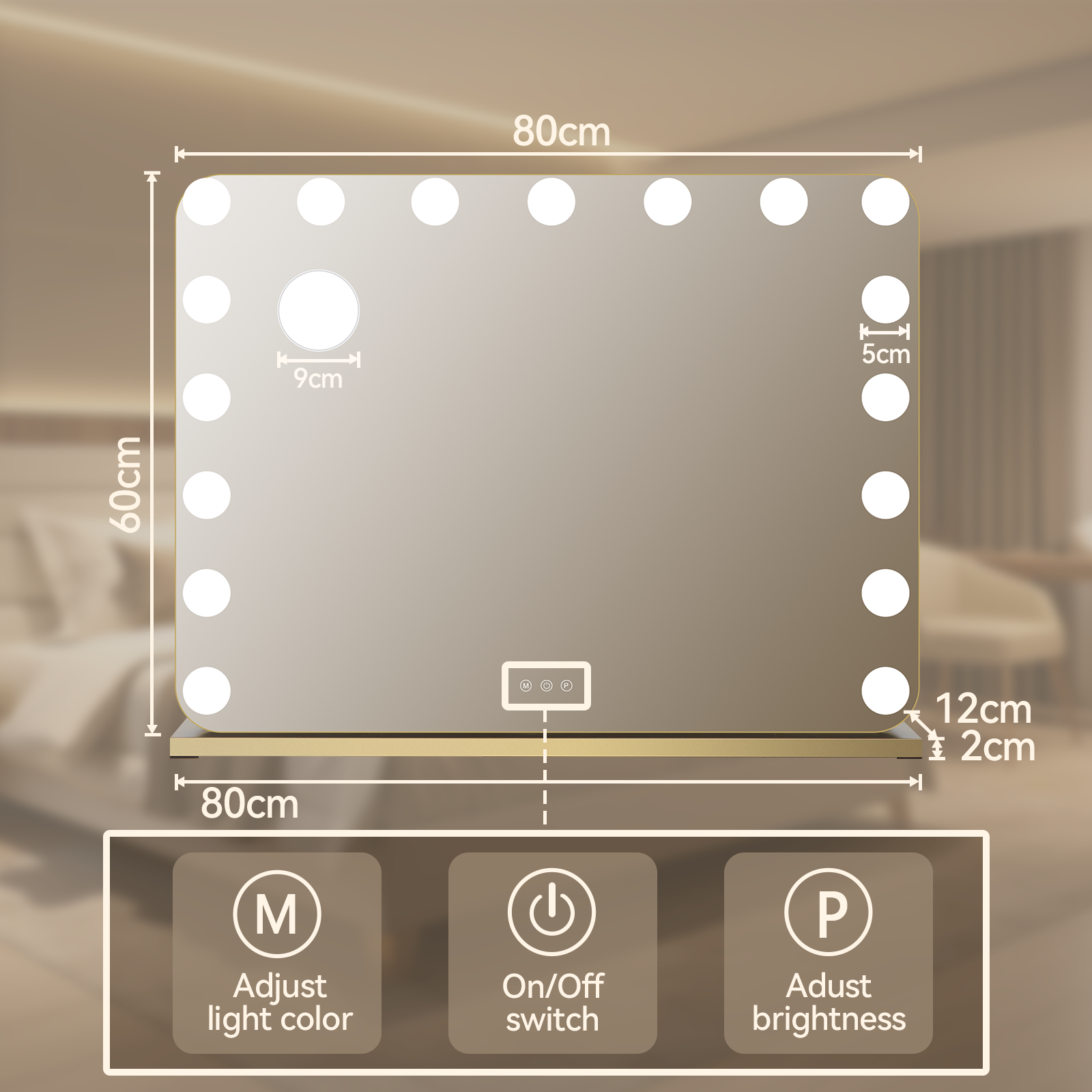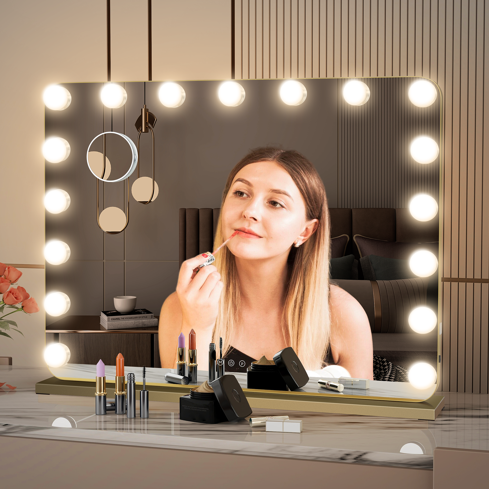17 LED Hollywood Vanity Makeup Mirror Lighted Touch Screen Light Up 80x60cm Gold