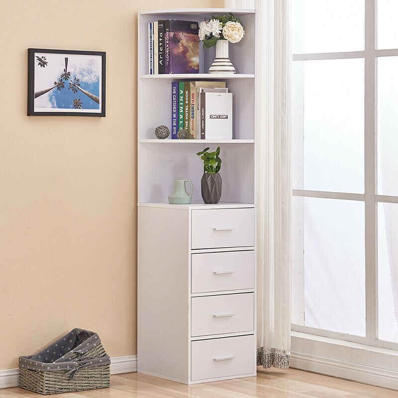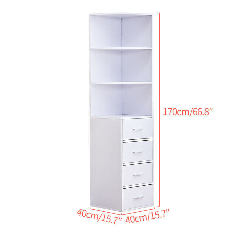 170cm Corner Cabinet with 3-Tier Shelves & 4 Drawers Storage Living Room Slim