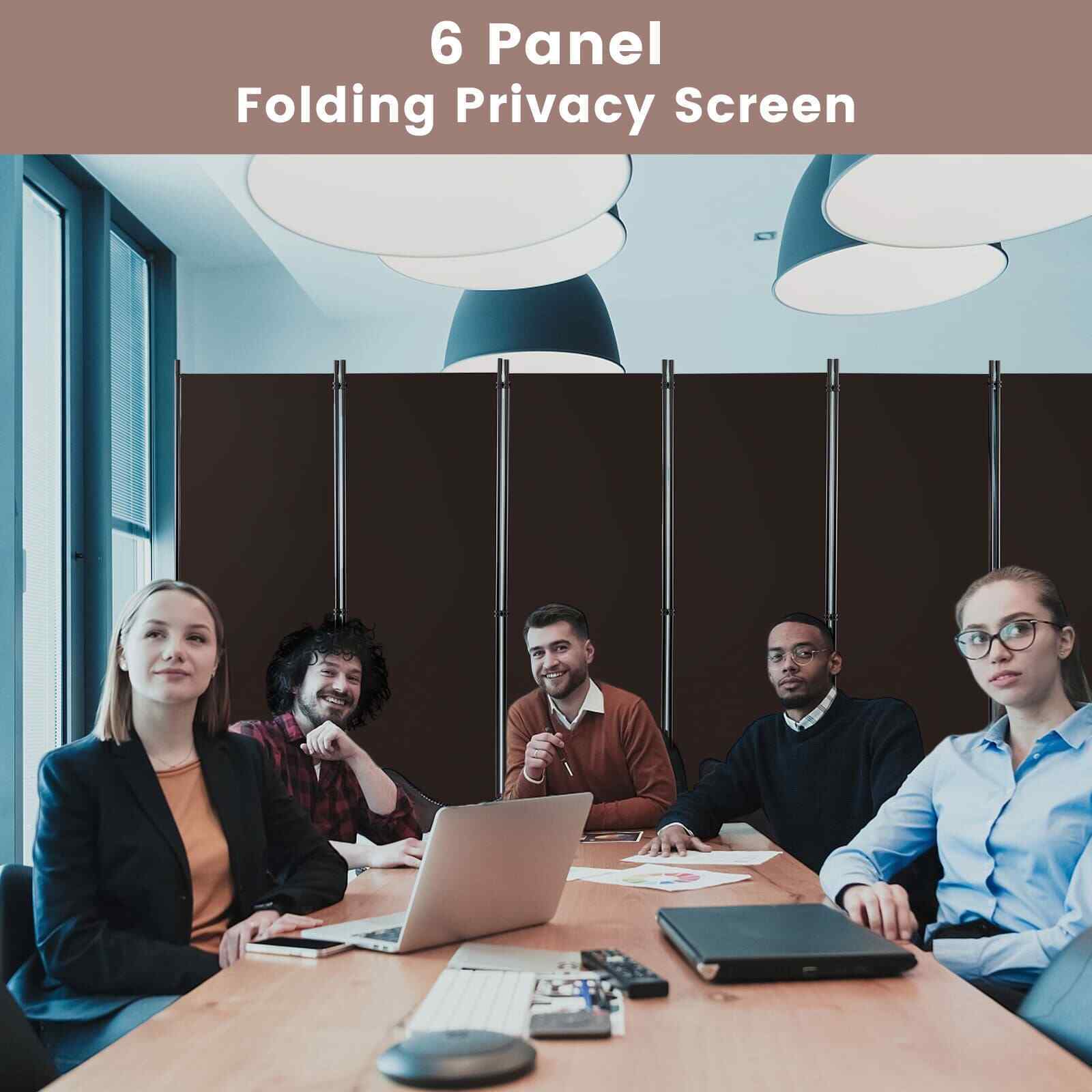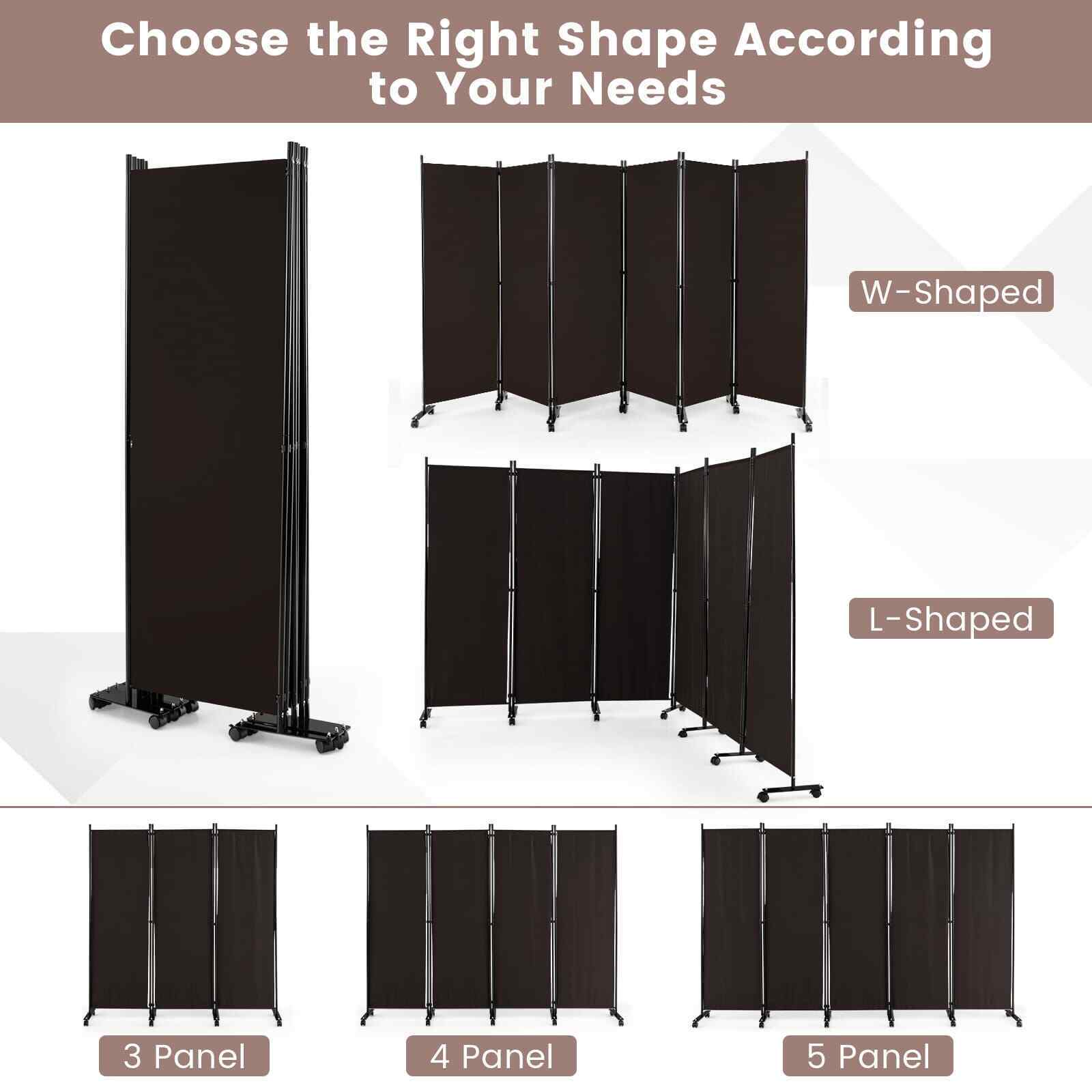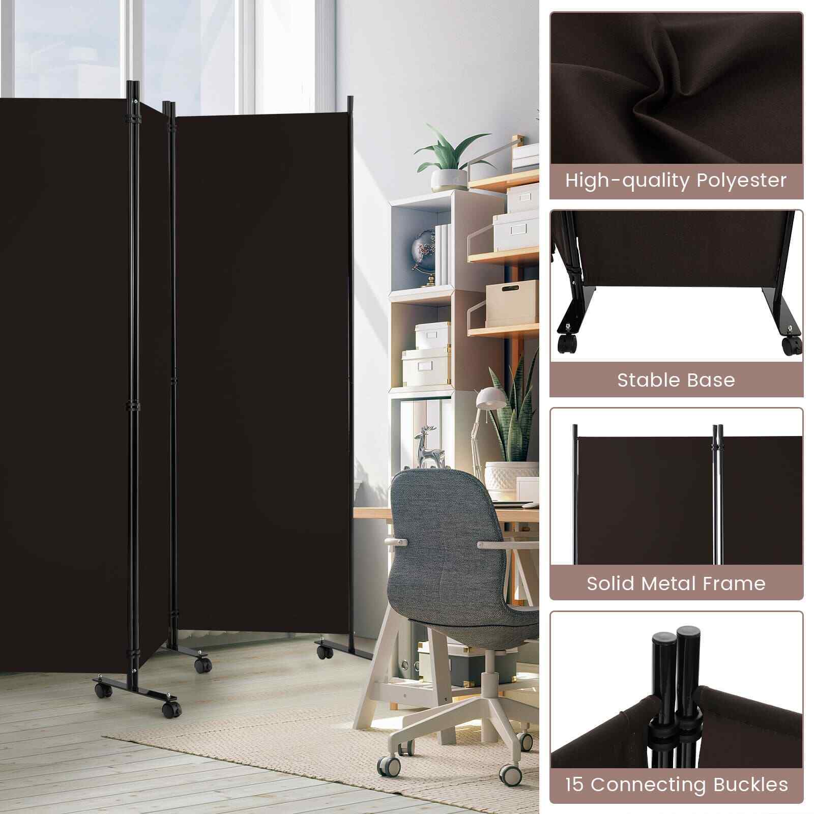172cm Rolling Privacy Screen Portable Wall Divider with Lockable Wheels -Coffee