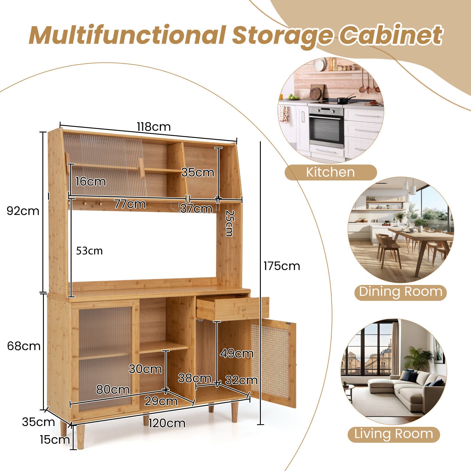 175CM Kitchen Bamboo Buffet Cabinet Wine Bar Freestanding Pantry Cabinet