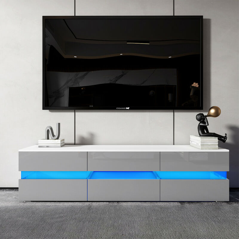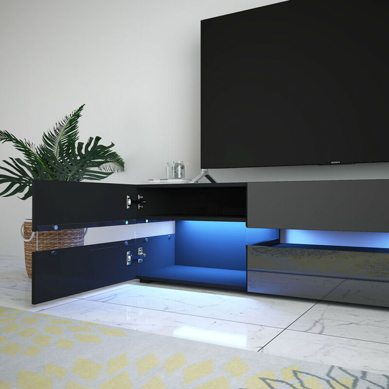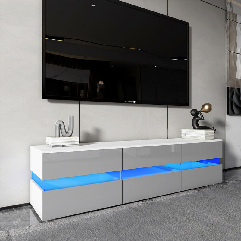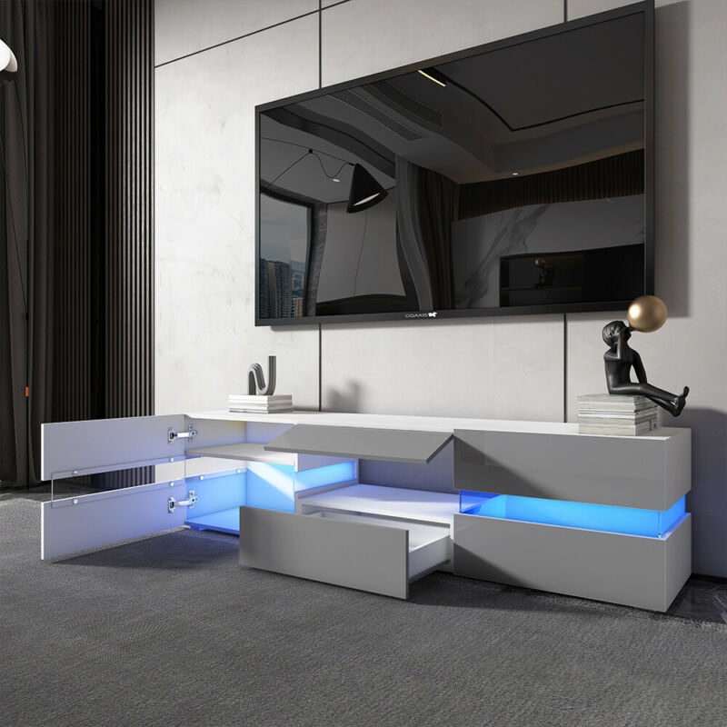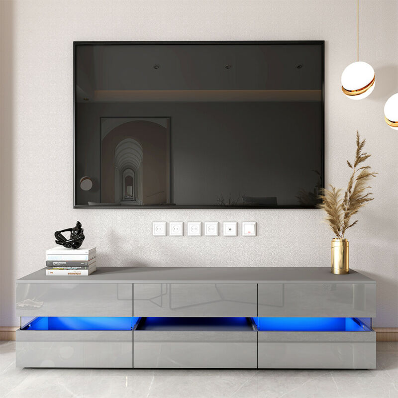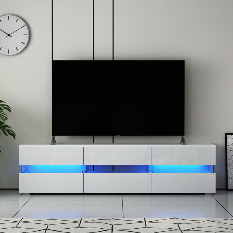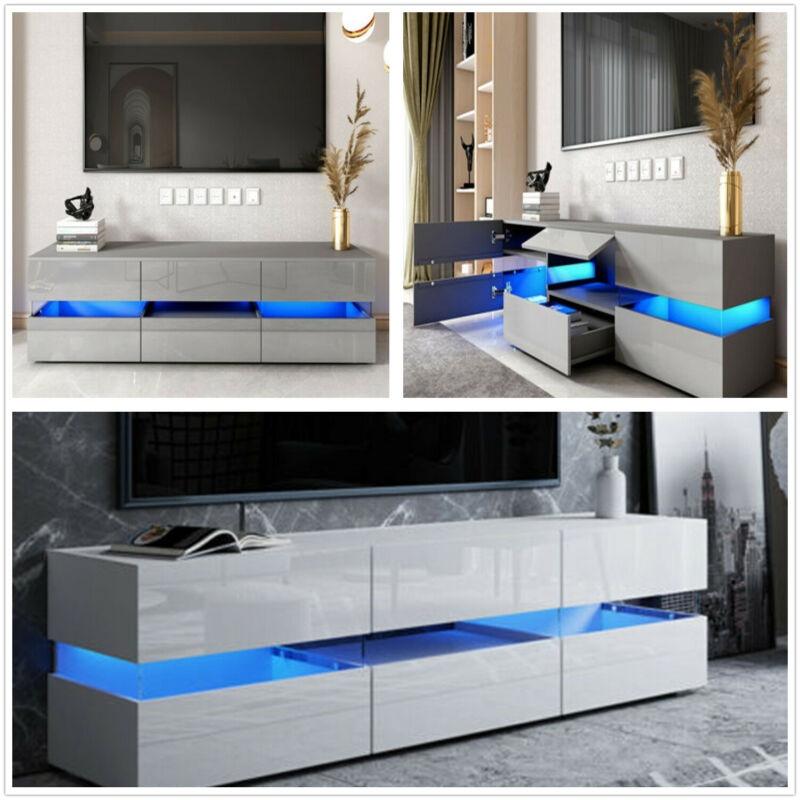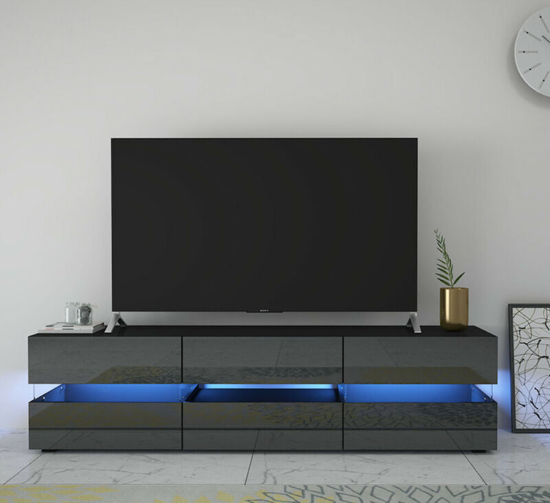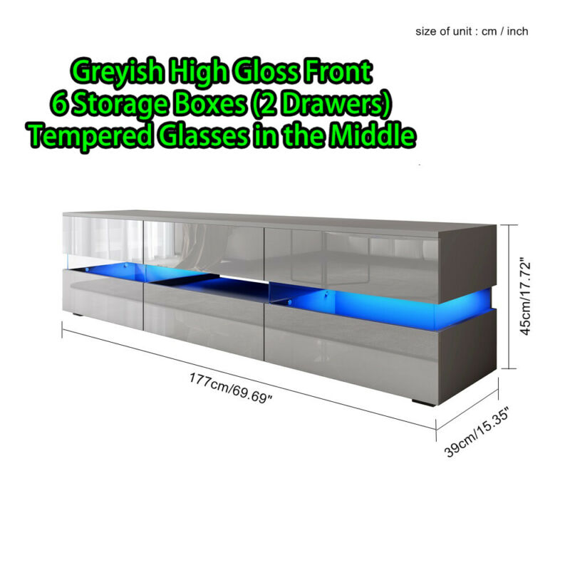 177CM Large TV Unit Stand Cabinet High Gloss Drawers Matt Body LED Lights UK