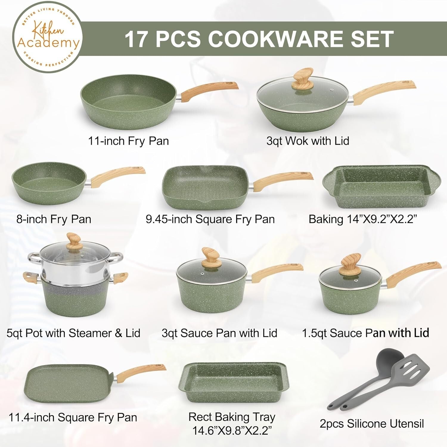 17Pcs Kitchen Cookware Pot Sets Granite Coated Nonstick Cooking Pan Set and Pot