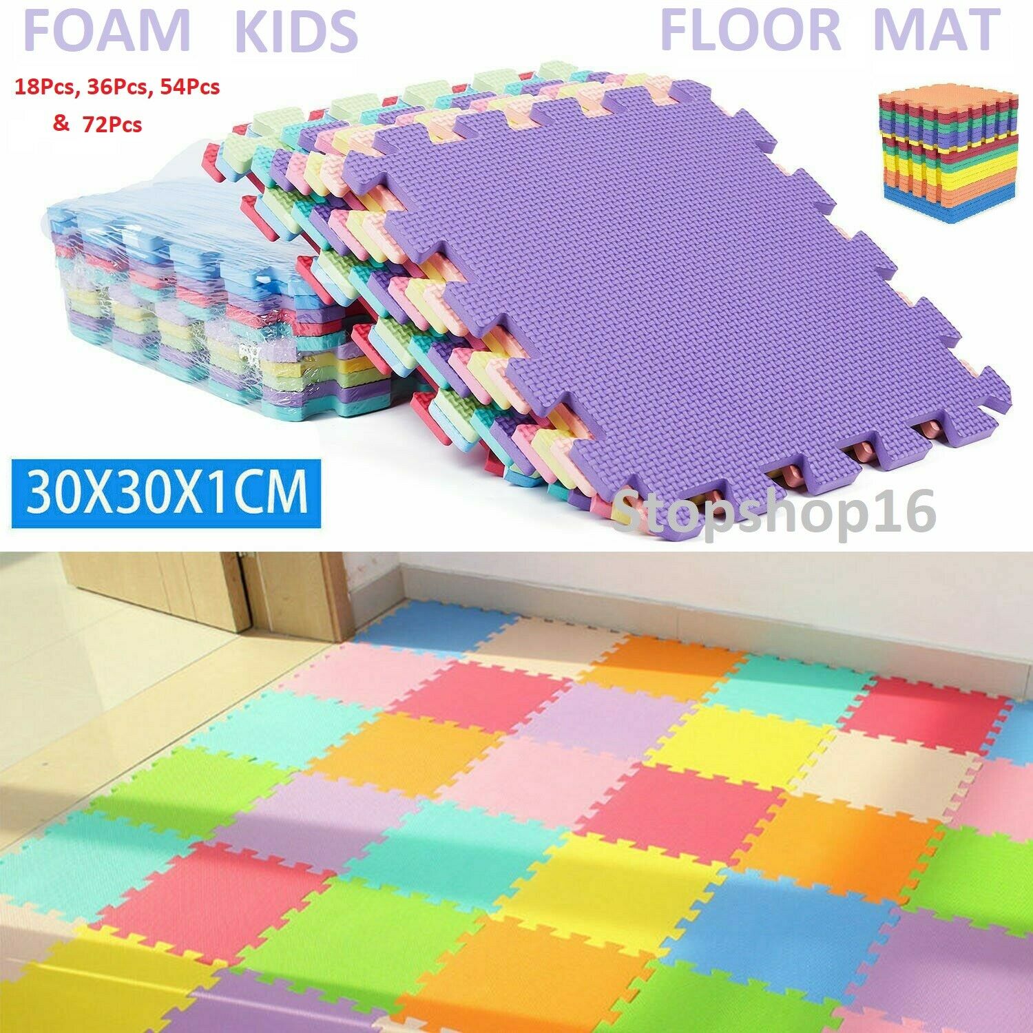 18-72Pc Large EVA Foam Kids Floor Mat Jigsaw Tiles Interlocking Garden Play Mats