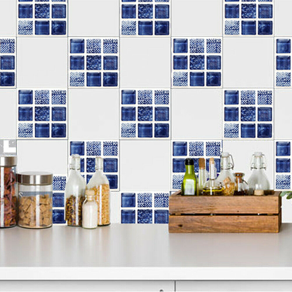 18/90pcs Kitchen Bathroom Mosaic Tile Stickers Self-Adhesive Waterproof Decal