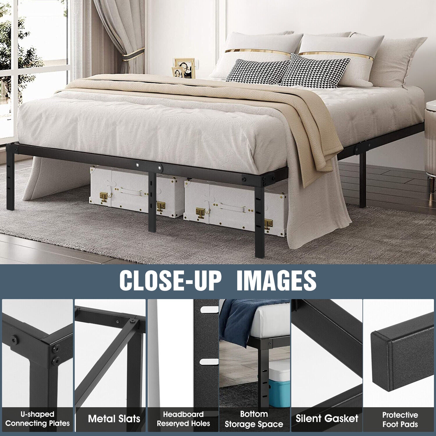 18 Inch Metal Platform Bed Frame/Non-slip Mattress Foundation Single/Double/King
