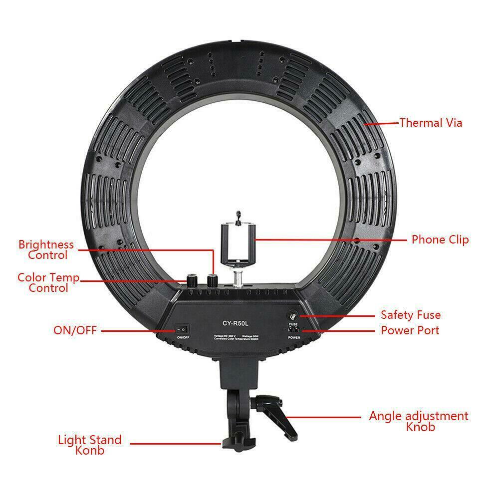 18" LED Ring Light Light Stand Kit Dimmable Photo Studio Selfie Phone Live