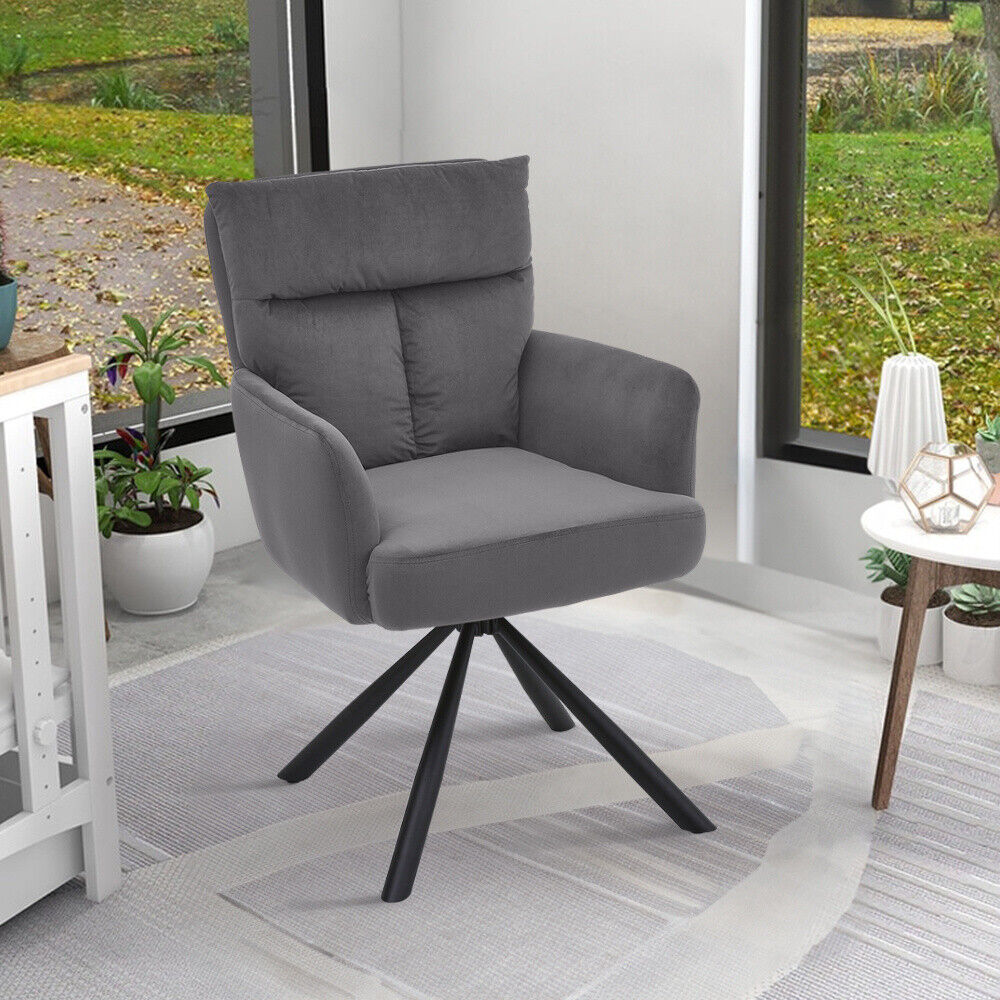 180° Swivel Velvet Armchair T-Cushion Soft Seat Home Office Computer Desk Chair