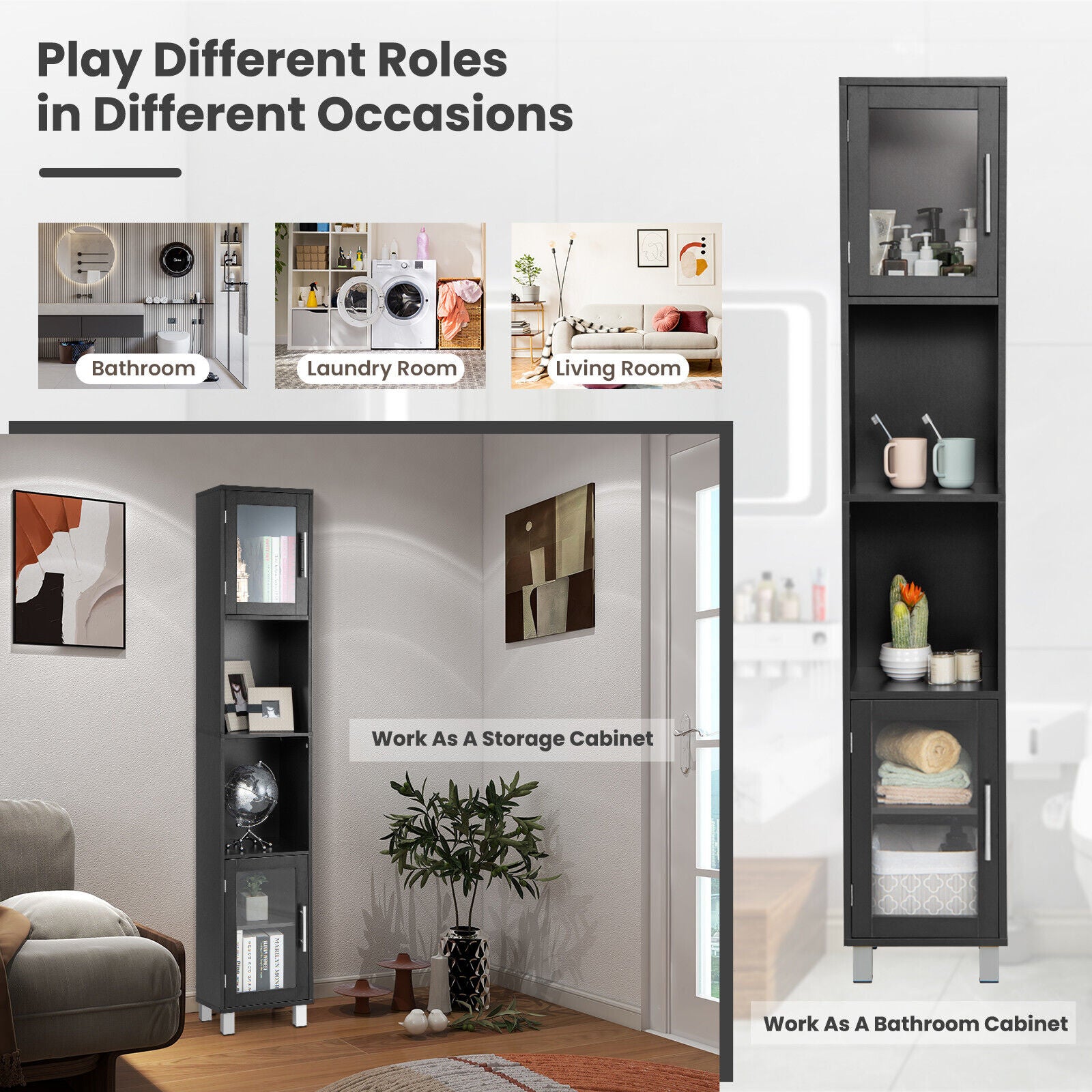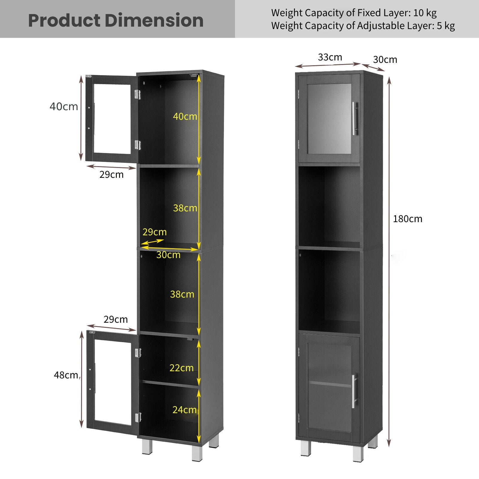 180CM Bathroom Cabinet Freestanding Slim Tower Cabinet Floor Storage Cabinet