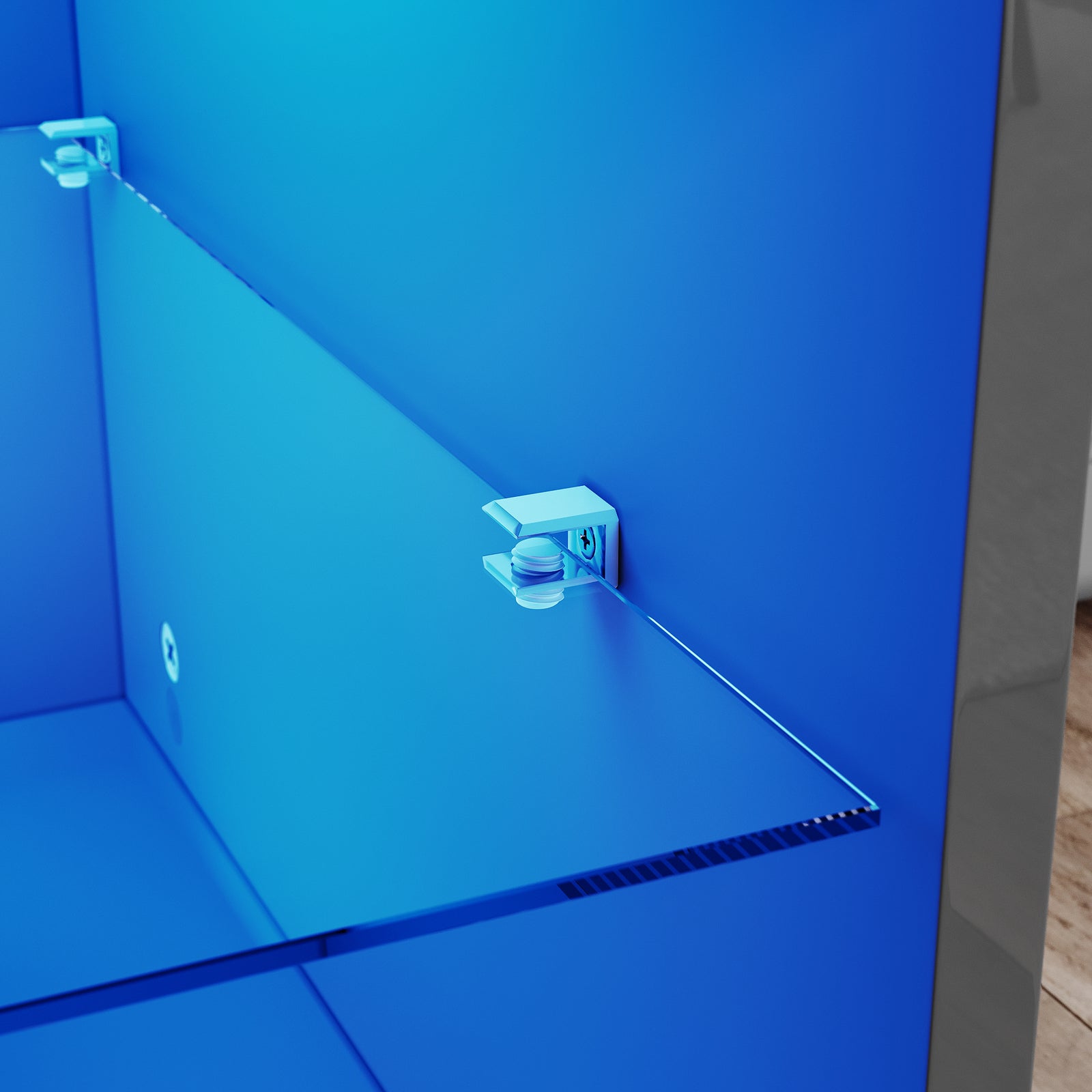 With LED Lights, With Shelves, High Gloss, Flat Pack, 6 Glass Shelves