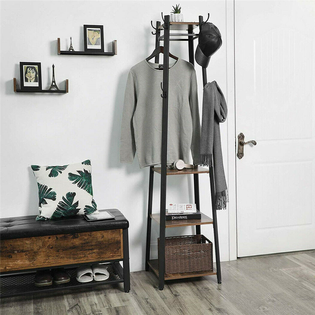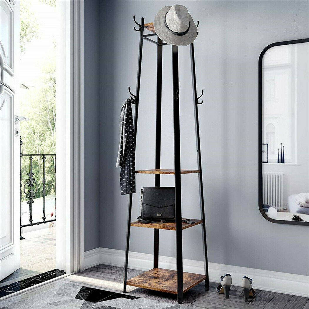 180cm Coat Stand Corner Garment Hat Rack Clothes Shoe Hanger with 3Storage Shelf