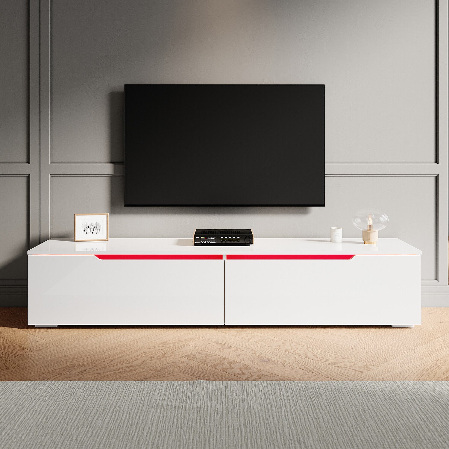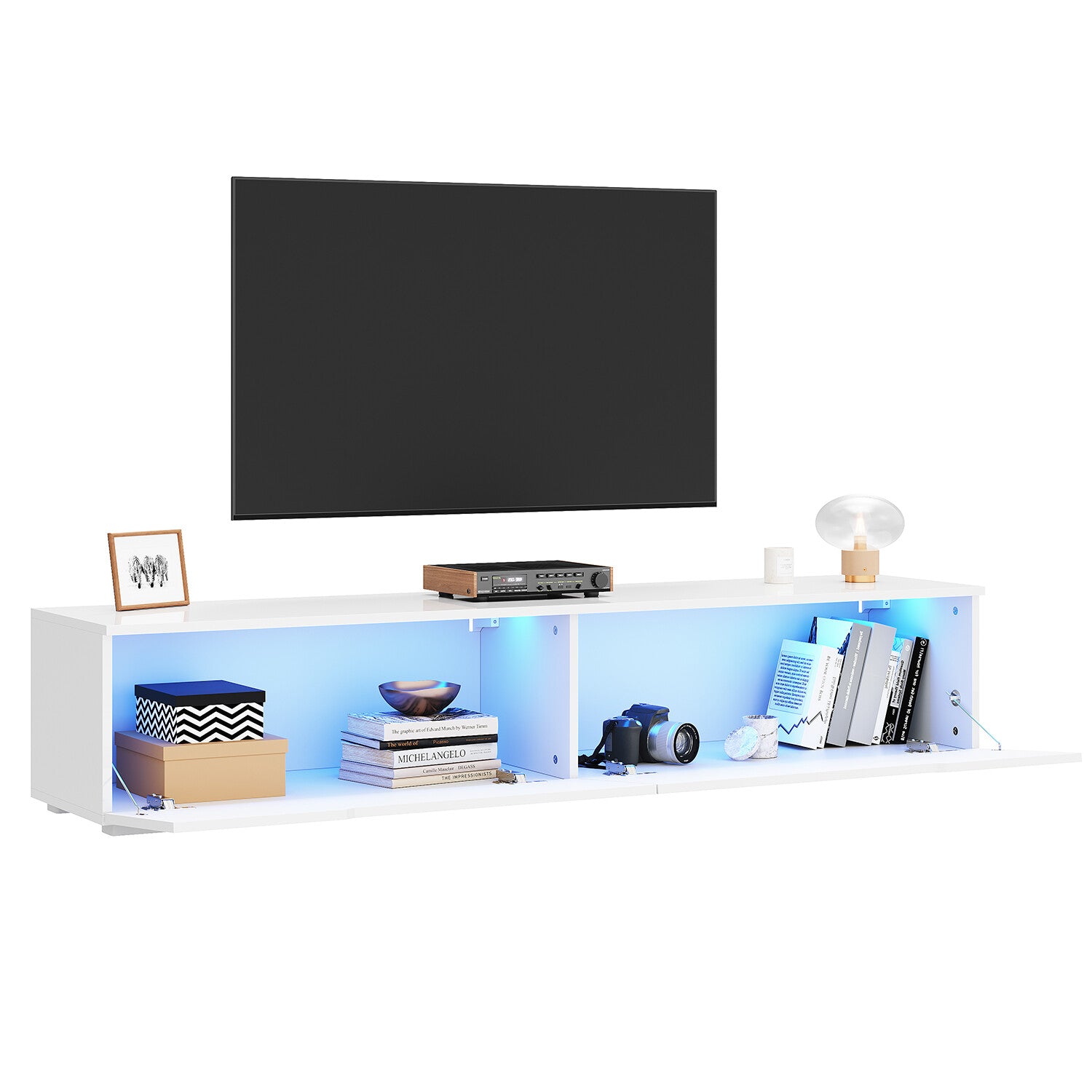 180cm High Gloss White Floating TV Stand Unit Cabinet Wall Mounted Storage Door