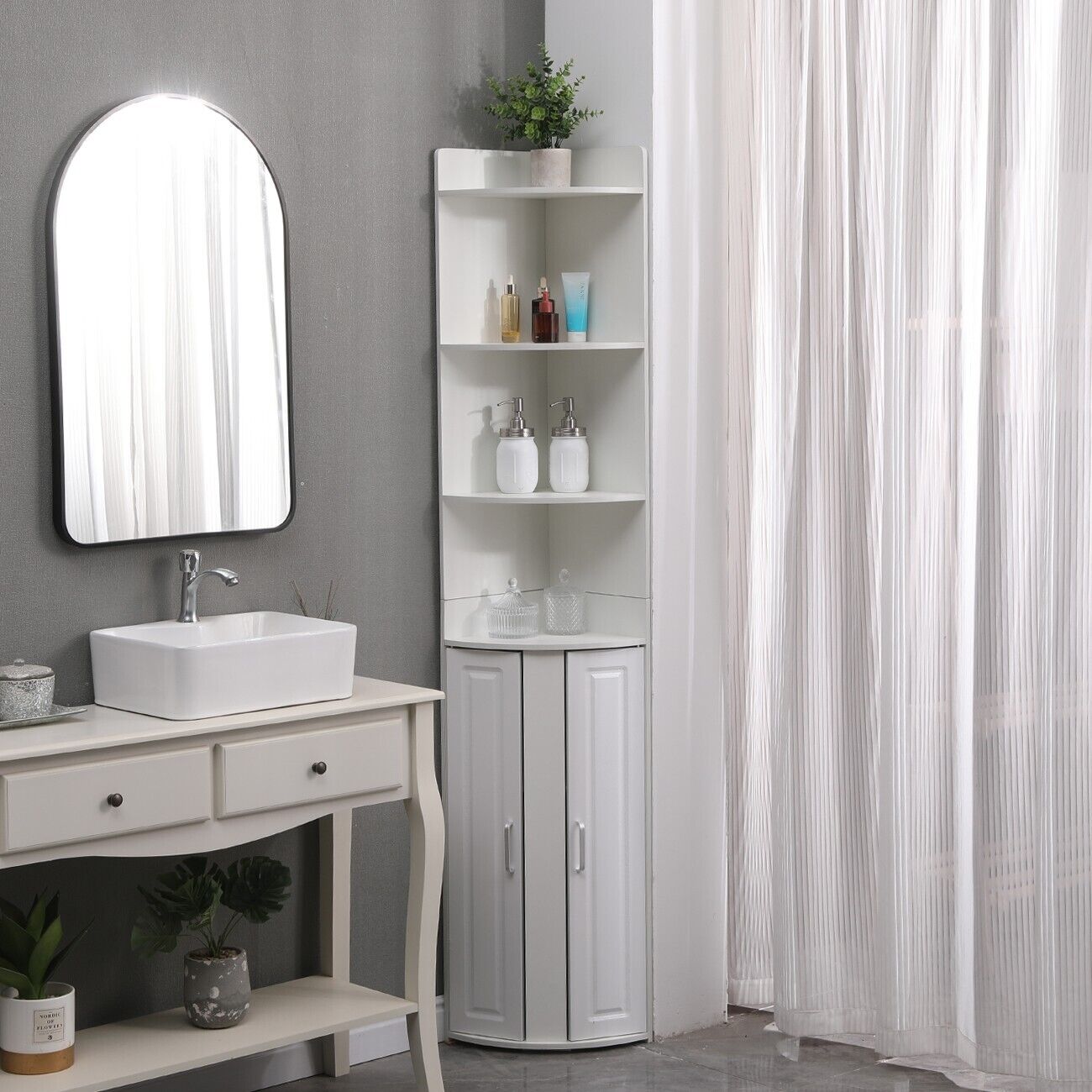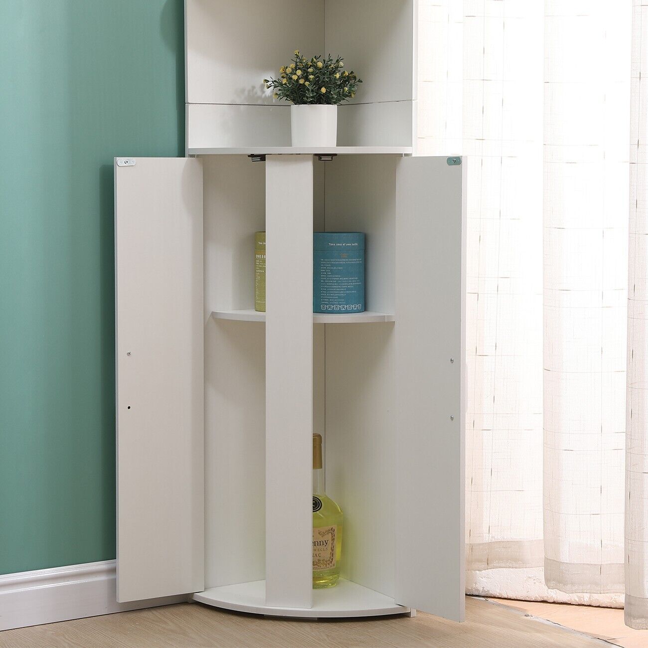 180cm Tall Corner Cabinet with 3-Tier Shelves & 2 Doors Storage Living Room Slim