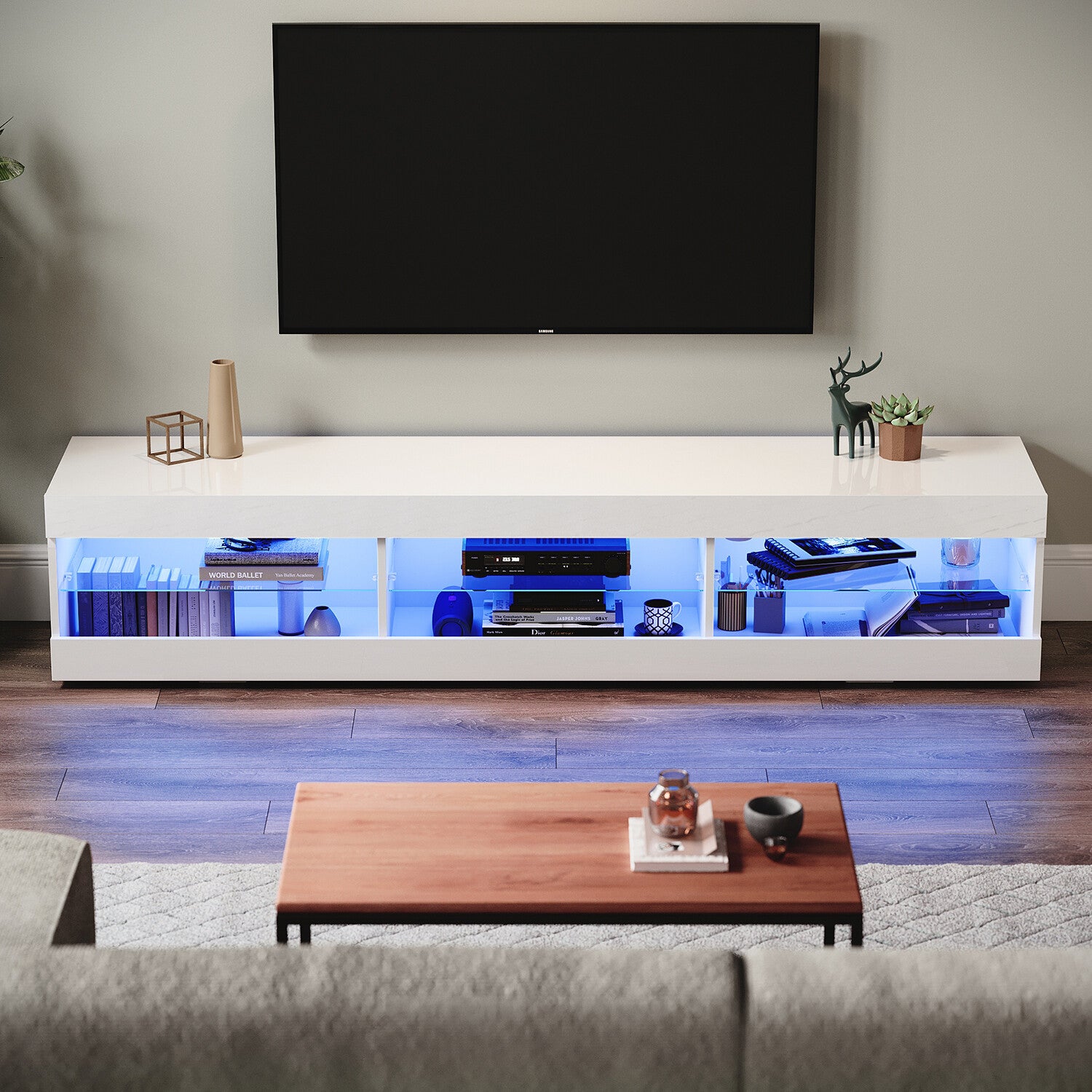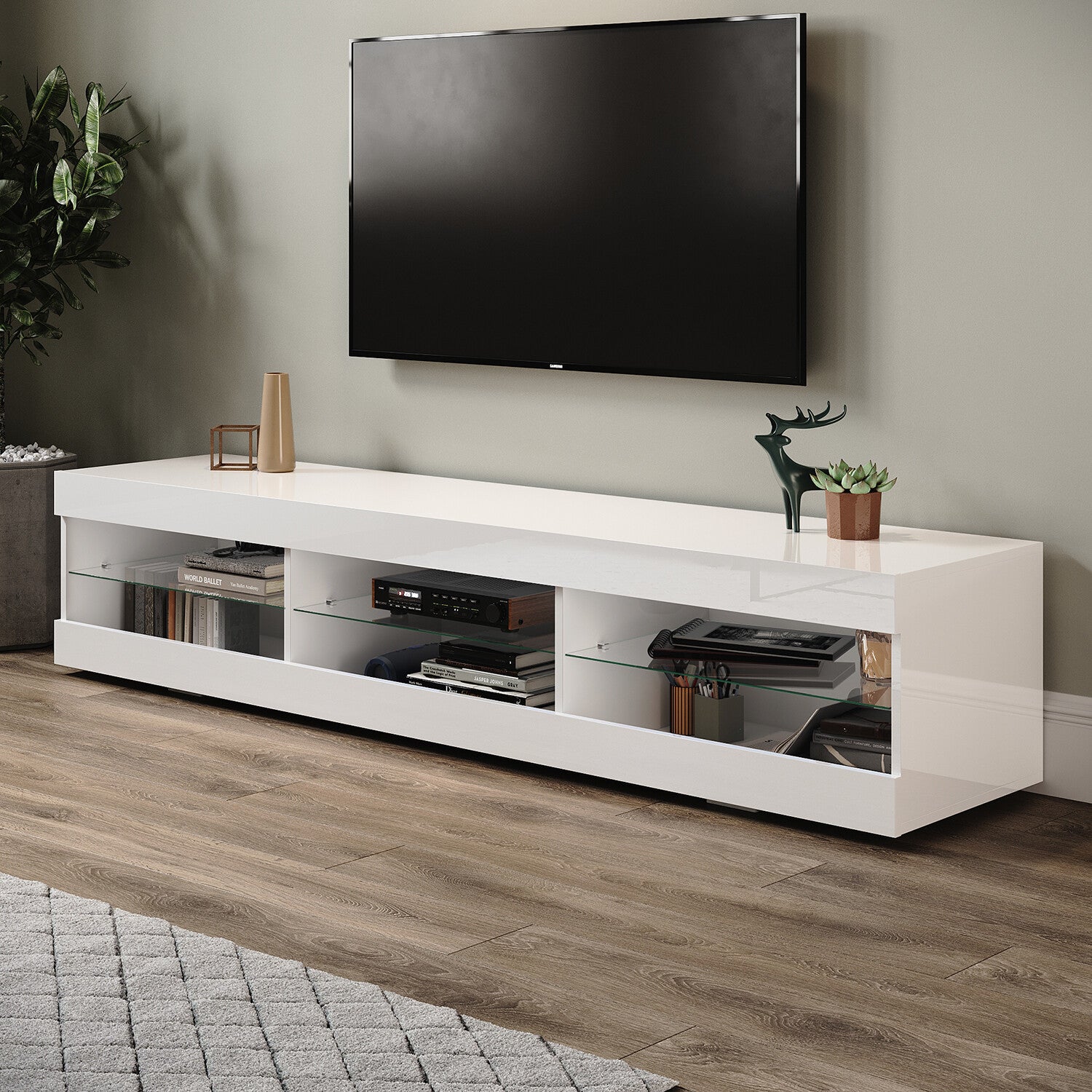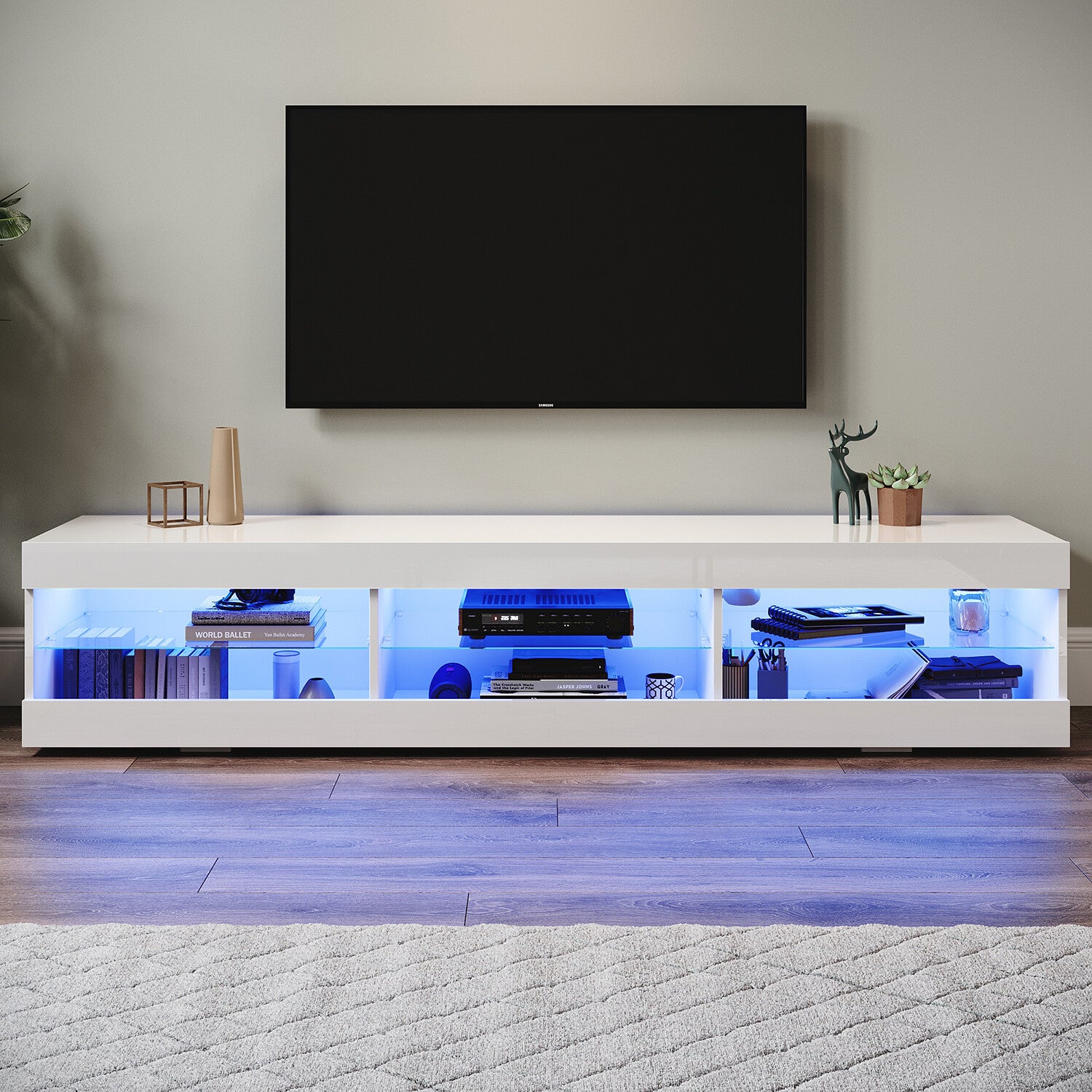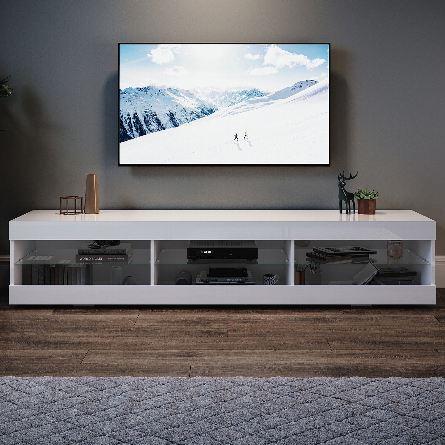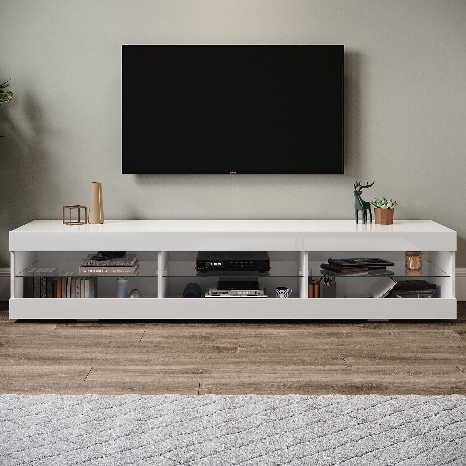 180cm White LED High Gloss TV Stand Cabinet Unit Stroage Glass Shelves Sideboard