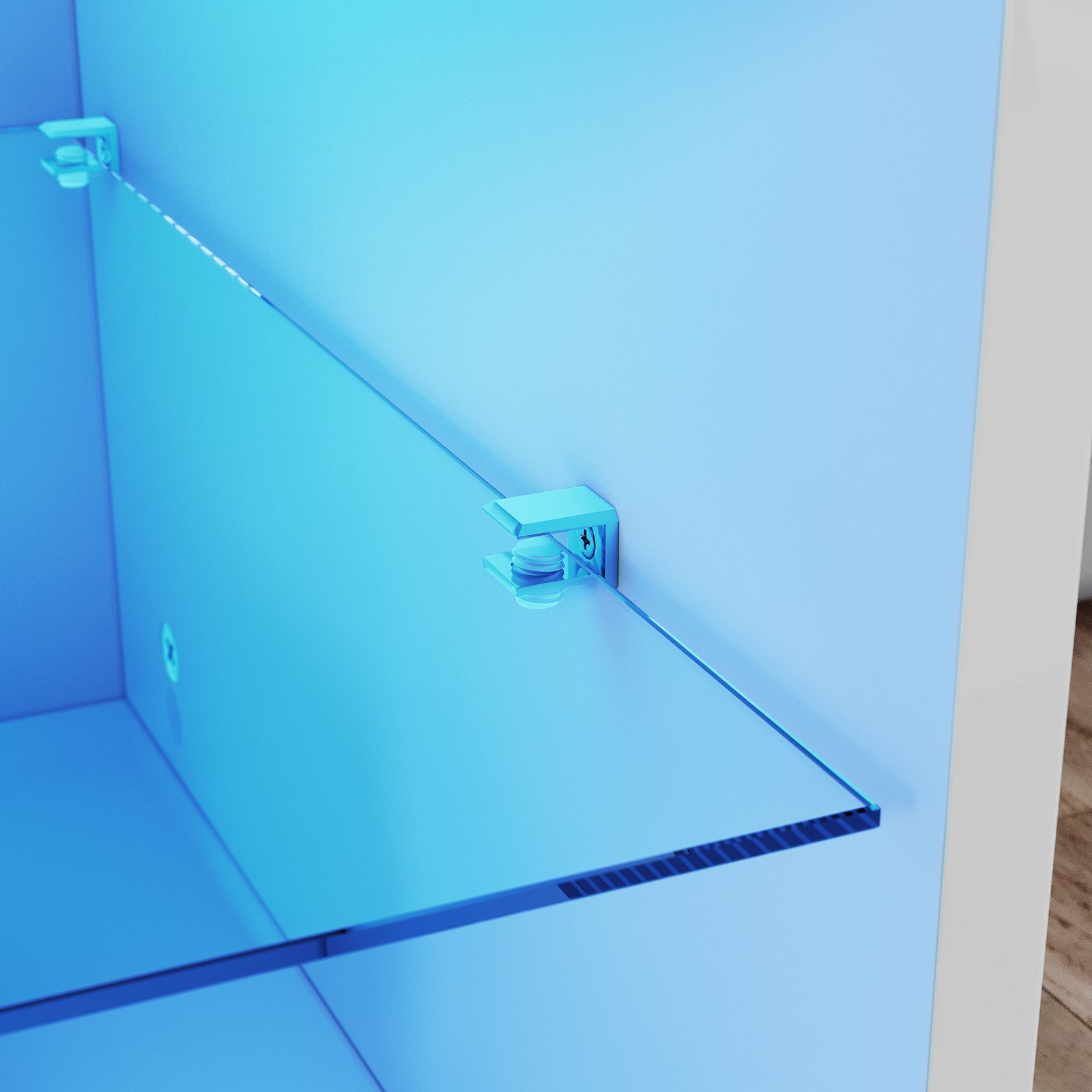 With LED Lights, With Shelves, High Gloss, Flat Pack, 6 Glass Shelves