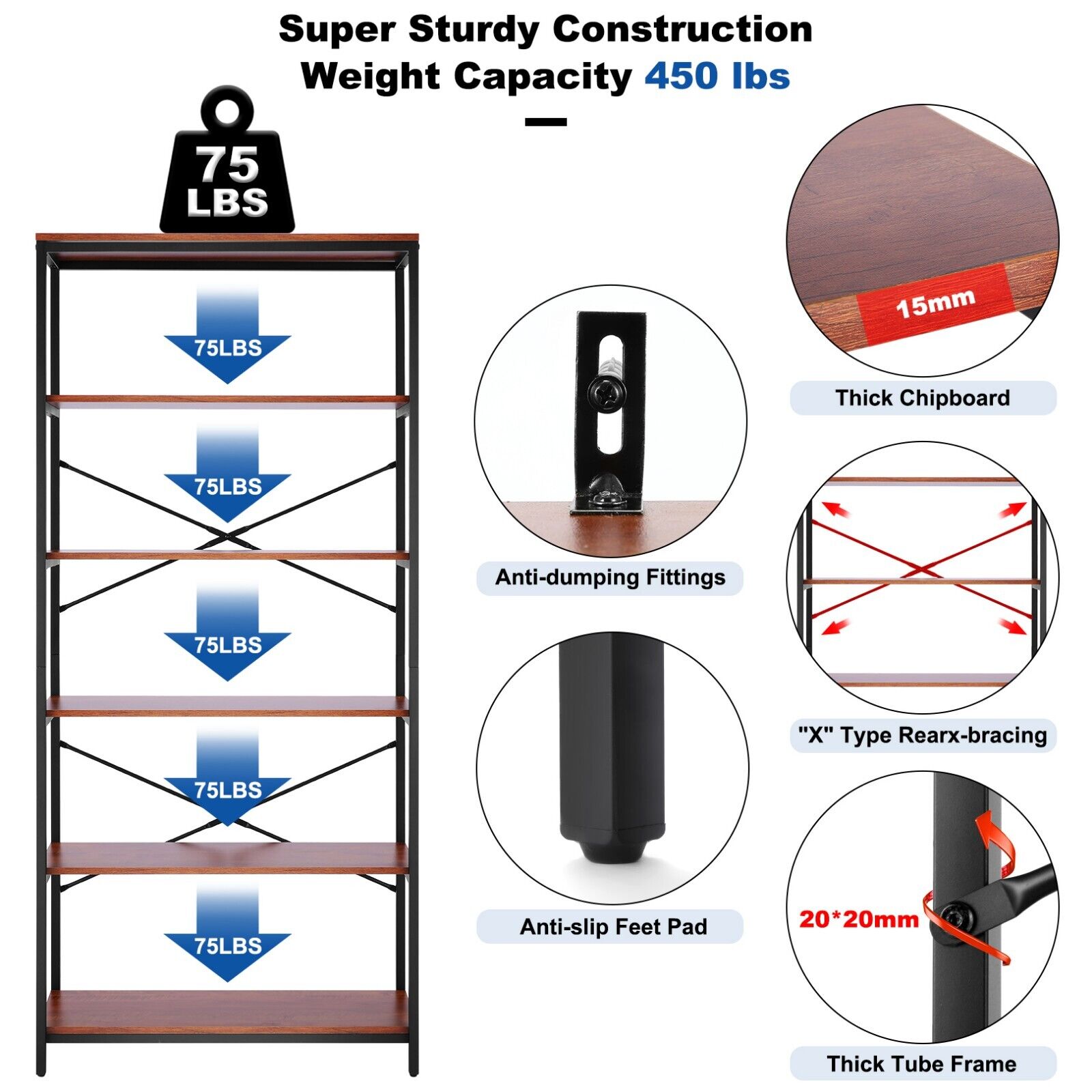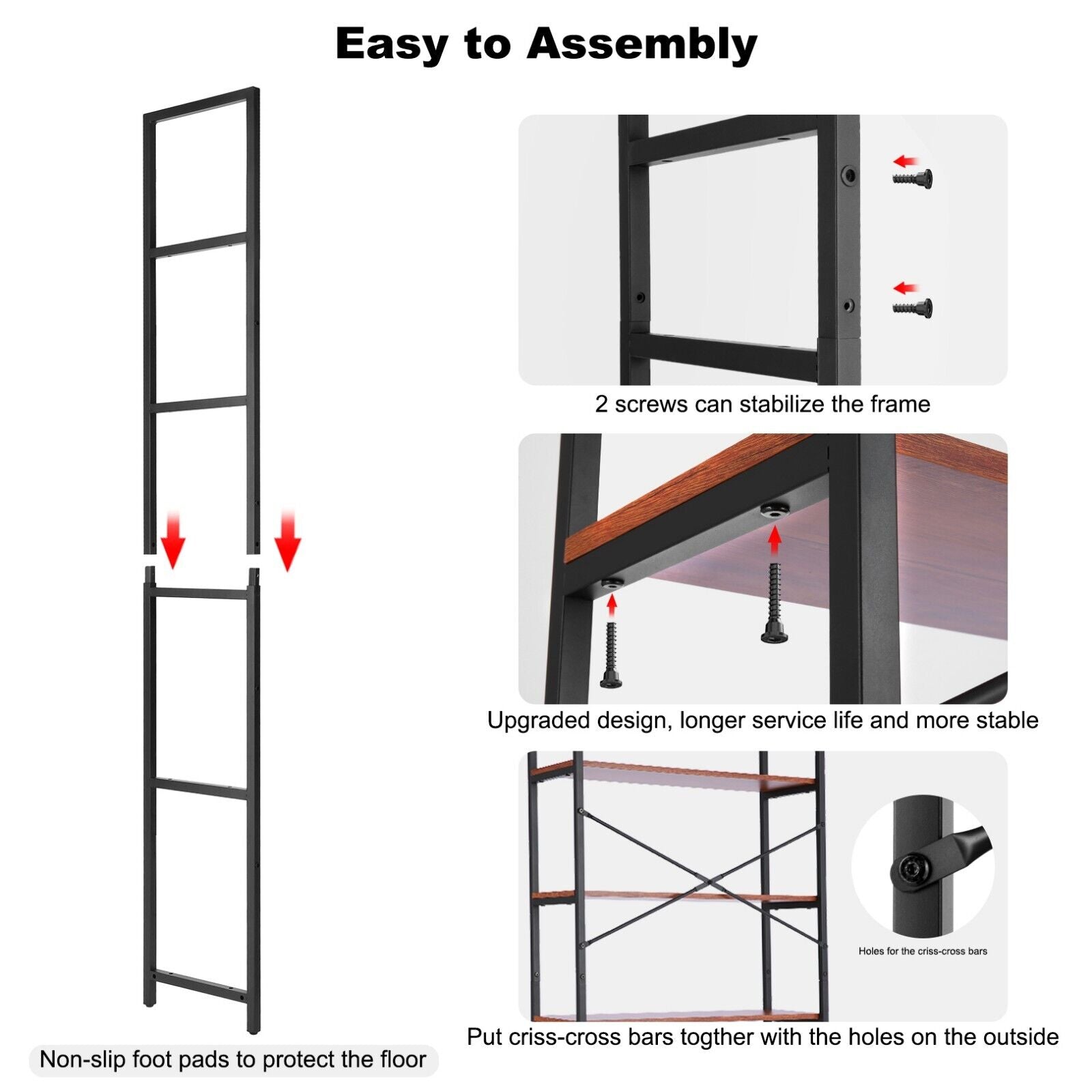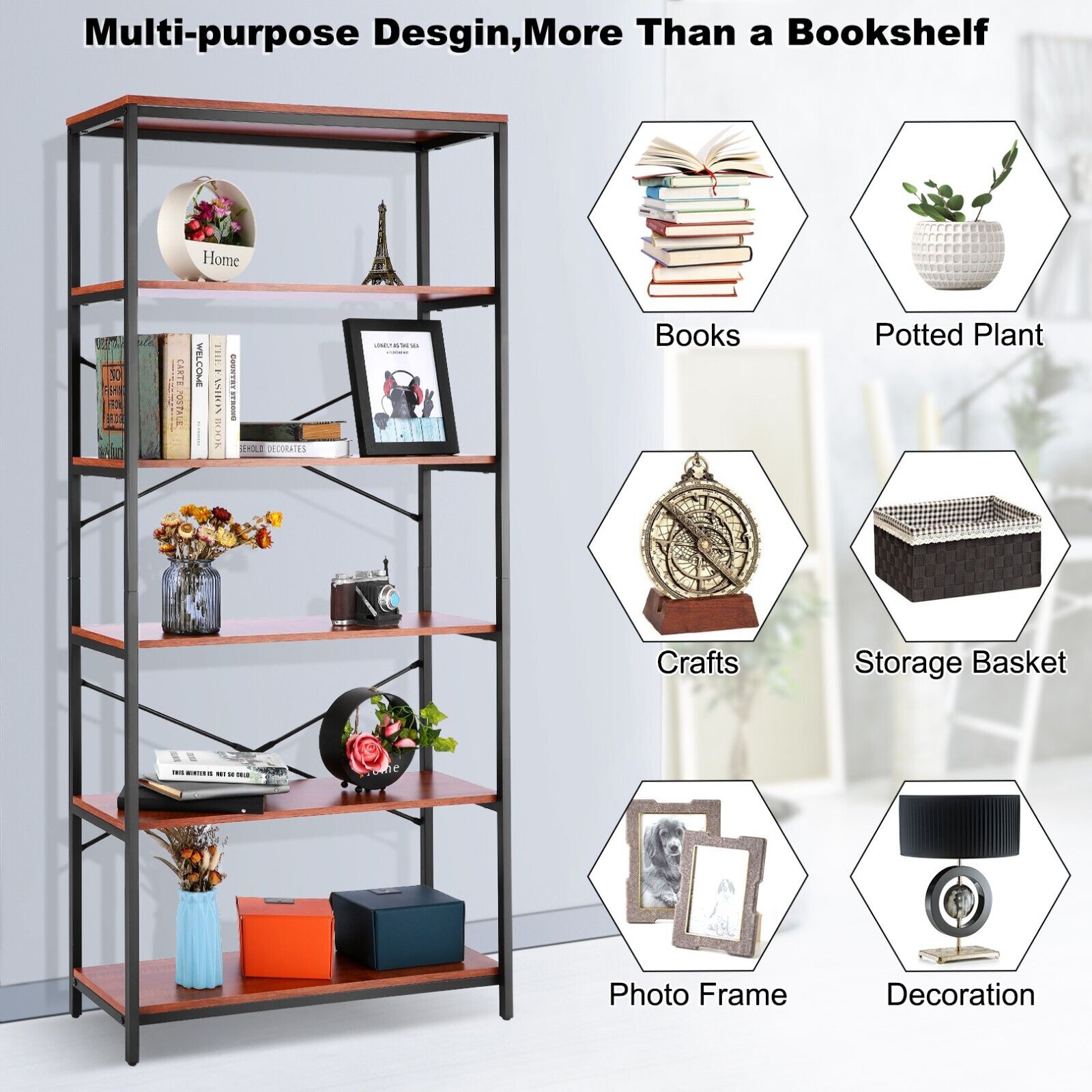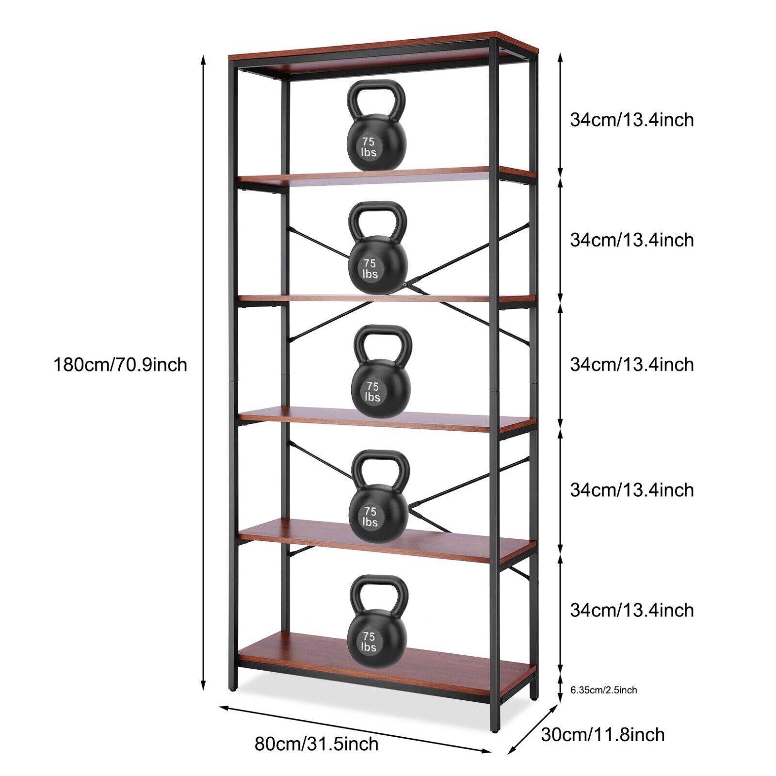 180cm Wood Bookcase Bookshelf 5 Tier Industrial Storage Display Shelving Unit