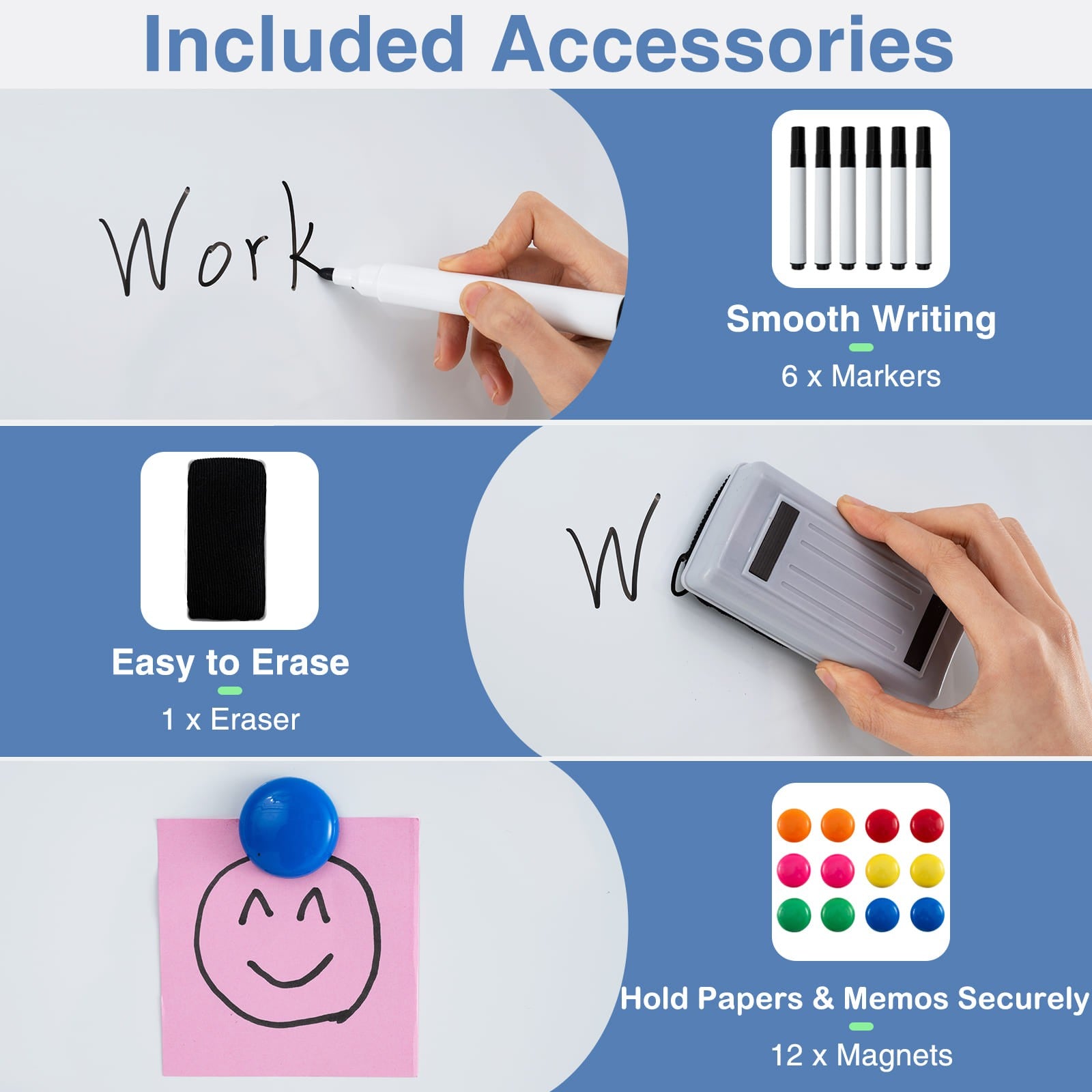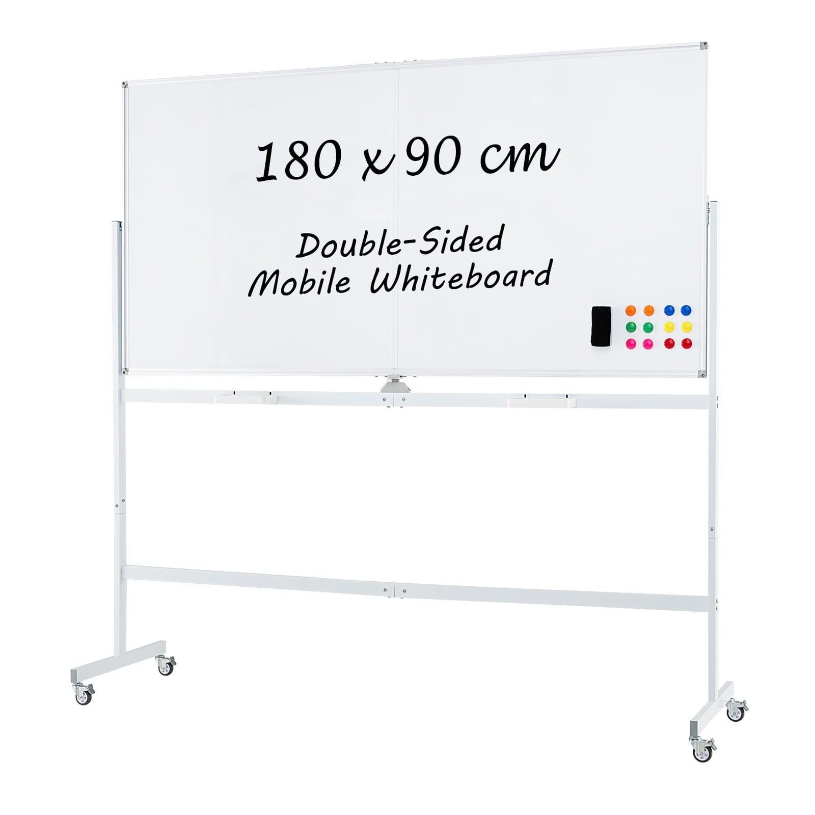 180x90CM Rolling Whiteboard on Wheels Double-Sided Magnetic Whiteboard