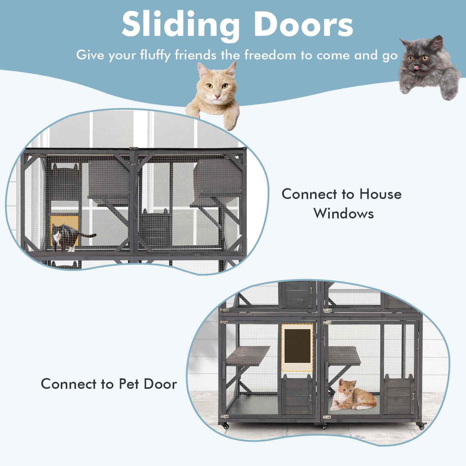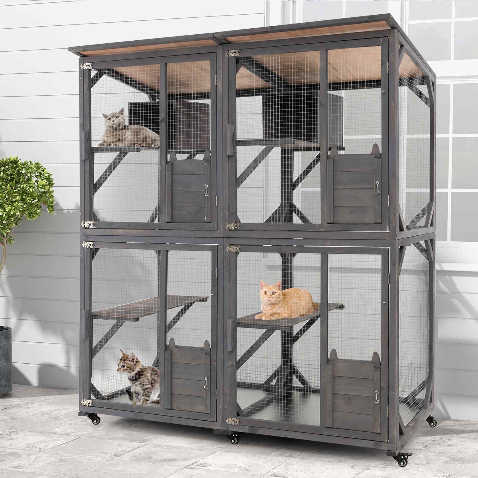 182 cm Tall Large Wooden Cat House Cat Kennel Condo-Grey