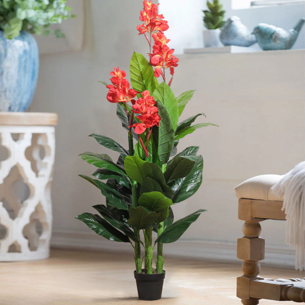 185cm Tall Artificial Banana Tree Plants Red Blossom Potted In & Outdoor Decor