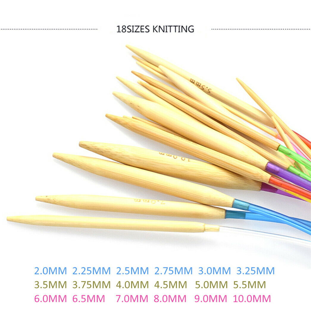 18x Wood Circular Knitting Needles Set Kit Double Pointed 2.5mm 3.5mm 4mm 5mm