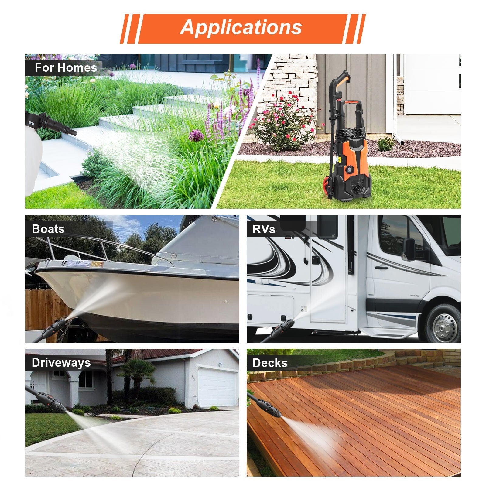cleaning cars, gardens, floors, walls, roofs, windows, etc