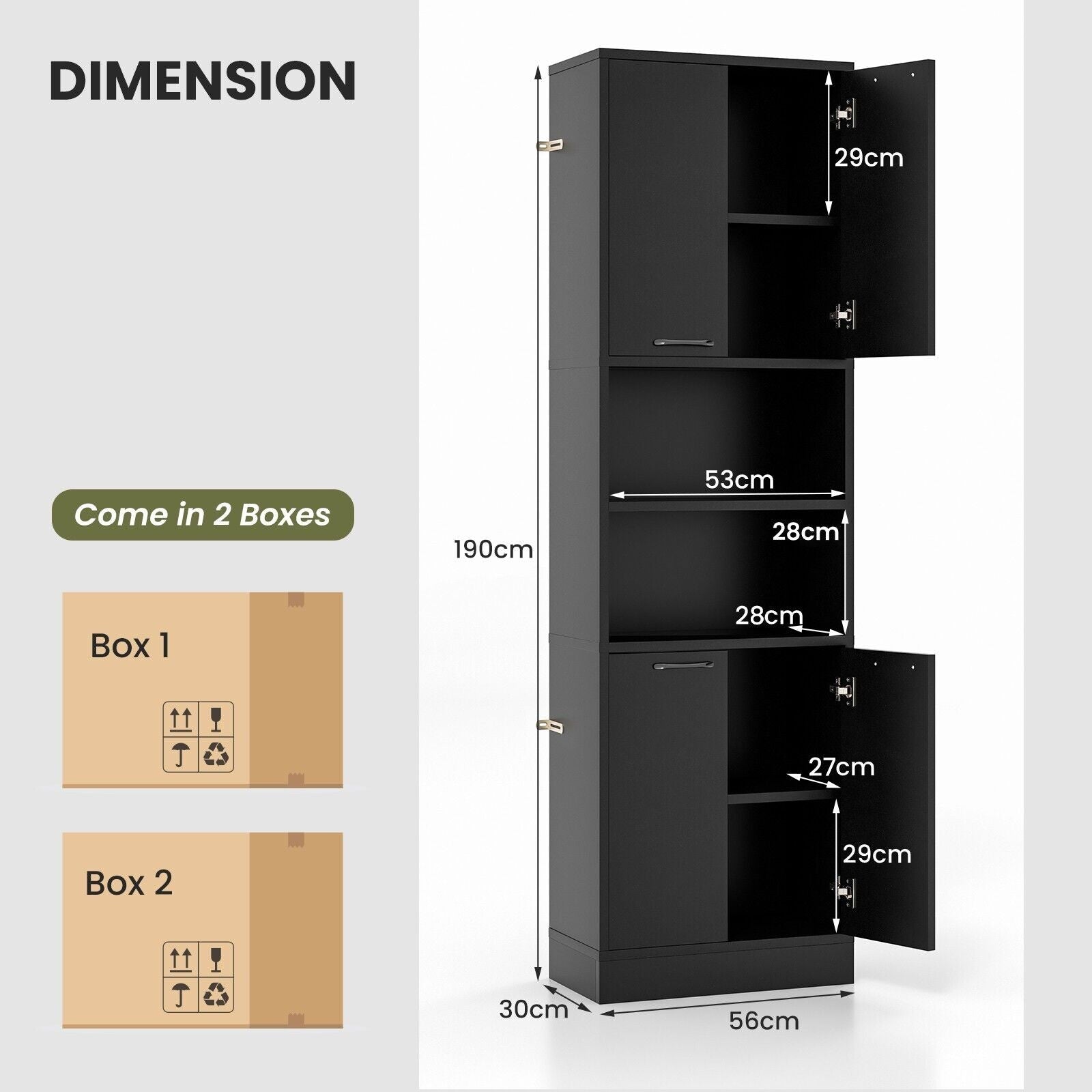 190cm Tall Freestanding Cupboard Kitchen Pantry Cabinet w/ Doors & Shelves Black