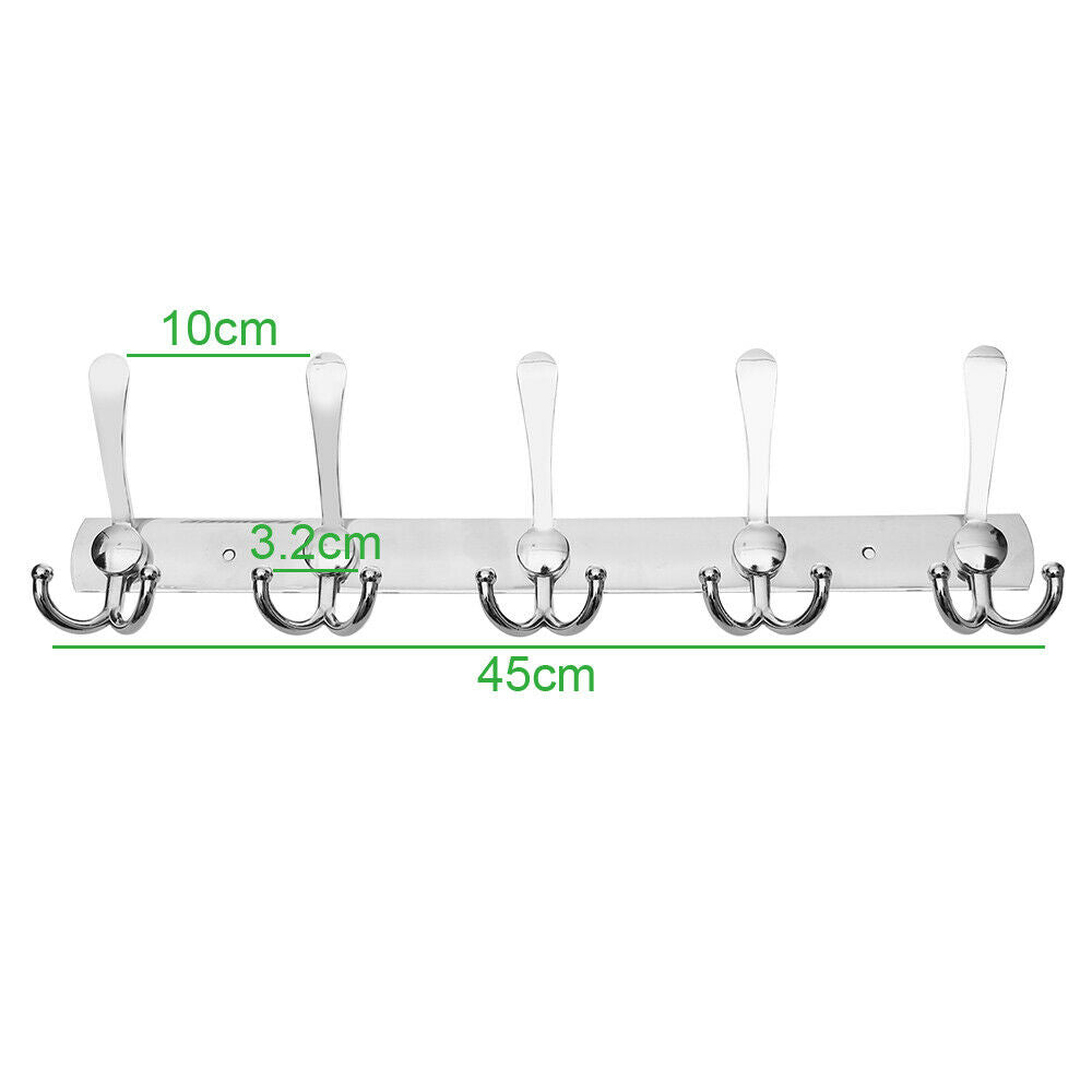 1Pcs 15 Hooks Coat Clothes Door Holder Rack Wall Mounted Hanger Stainless Steel