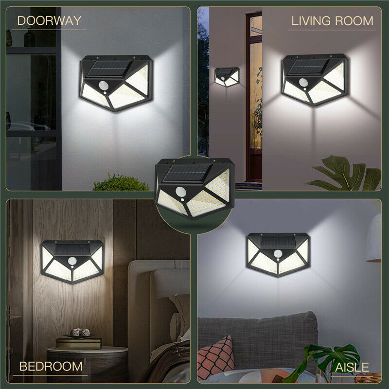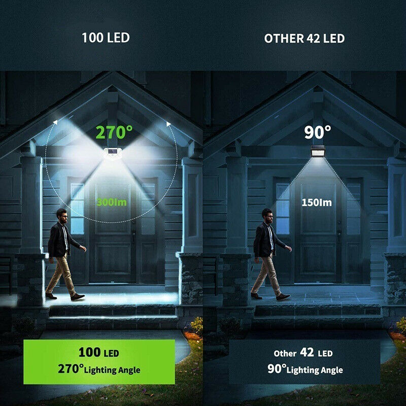1x 100LED Solar Power PIR Motion Sensor Wall Lights Outdoor Garden Security Lamp