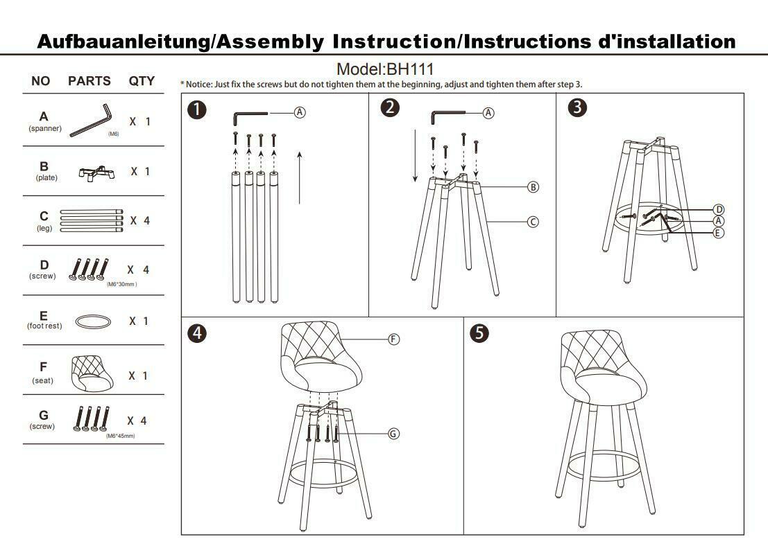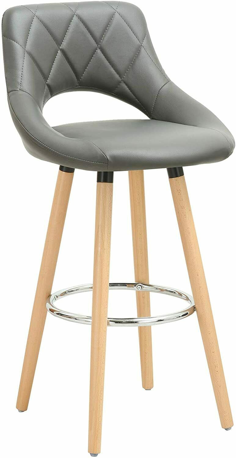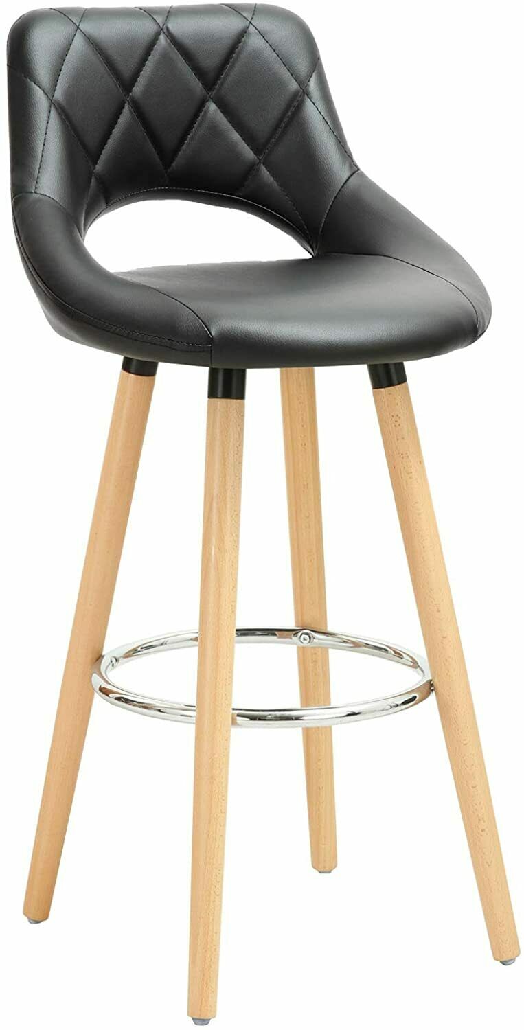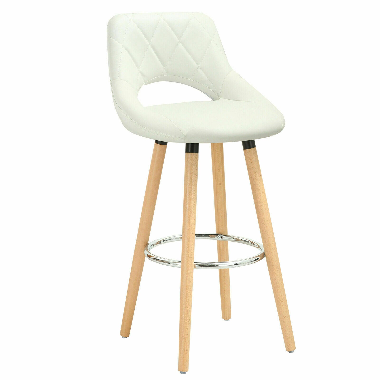 1x Breakfast Bar Stool Leather Stool Kitchen Bar Chair Wood Legs with footrest