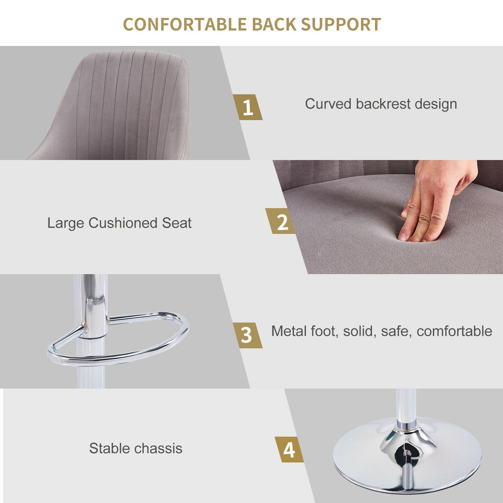 Features: Velvet Bar Stools, Modern Style, Soft Touch, Swivel, Adjustable Height, Gas Lift, with Footrest, Padded Seat