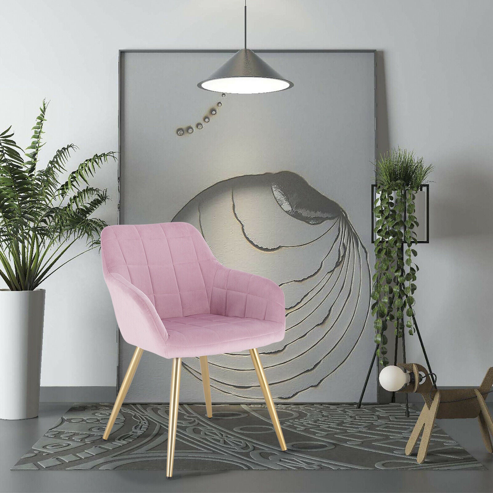 1x Kitchen Dining Chair Lounge Living Room Corner Chair with Velvet Steel Legs