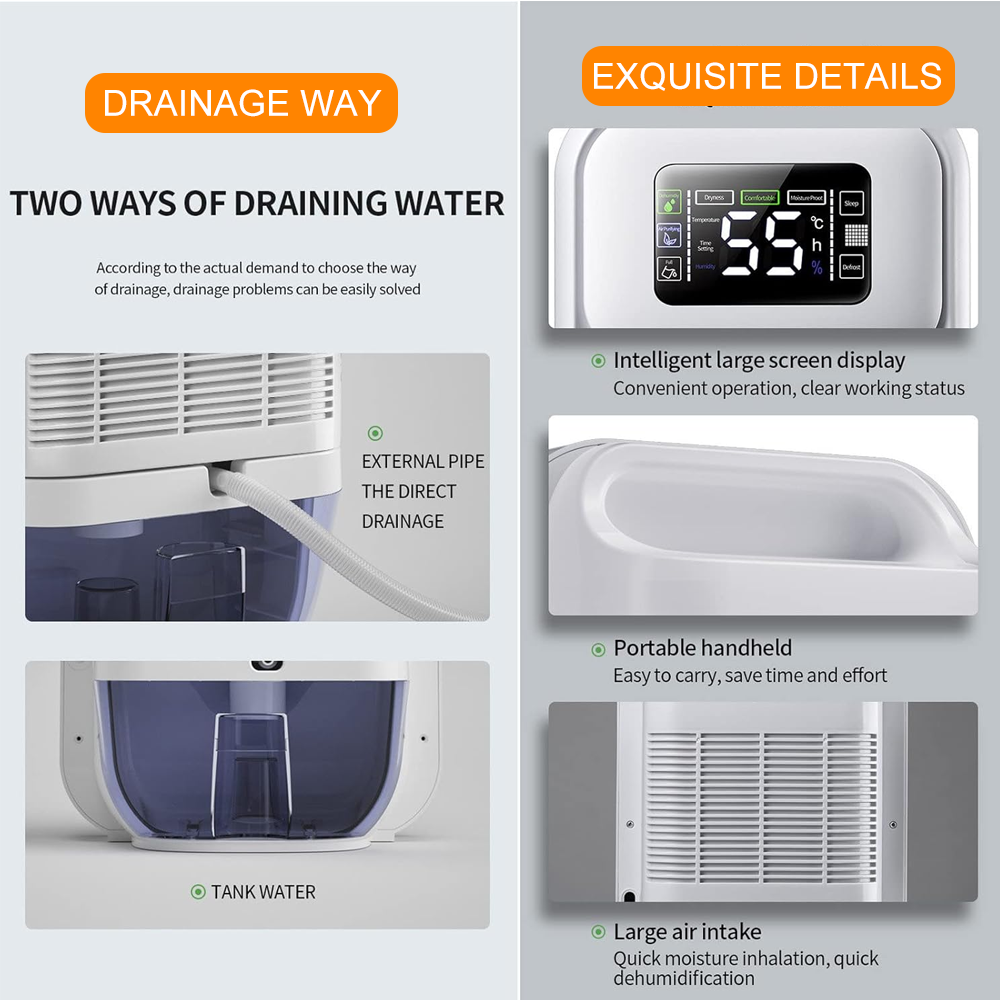 2.2L Dehumidifier Portable Quiet Home Air Dryer for Mould Moisture Damp w/Remote